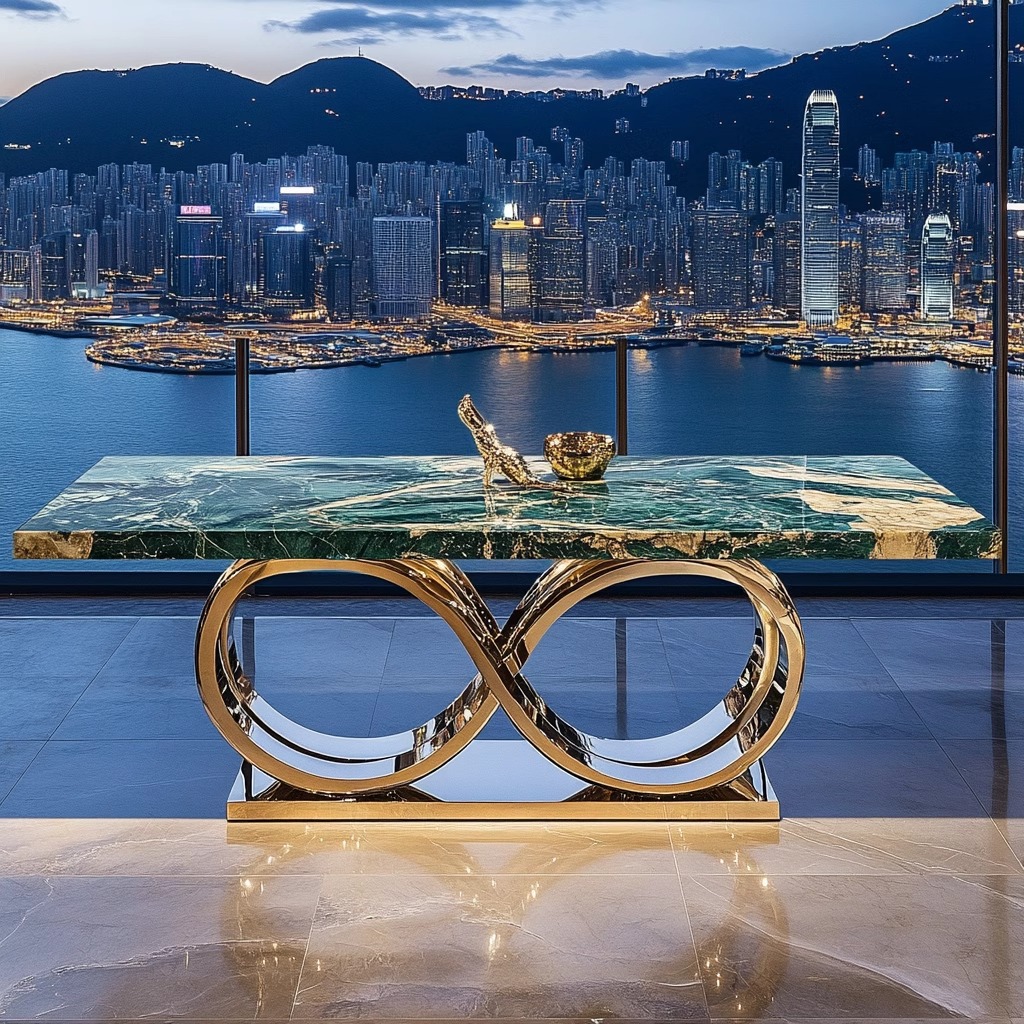 発光翡翠長方形高級石ダイニングテーブルモダンな大理石高級石ライト高級スタイルレストランシンプルなヴィラホーム