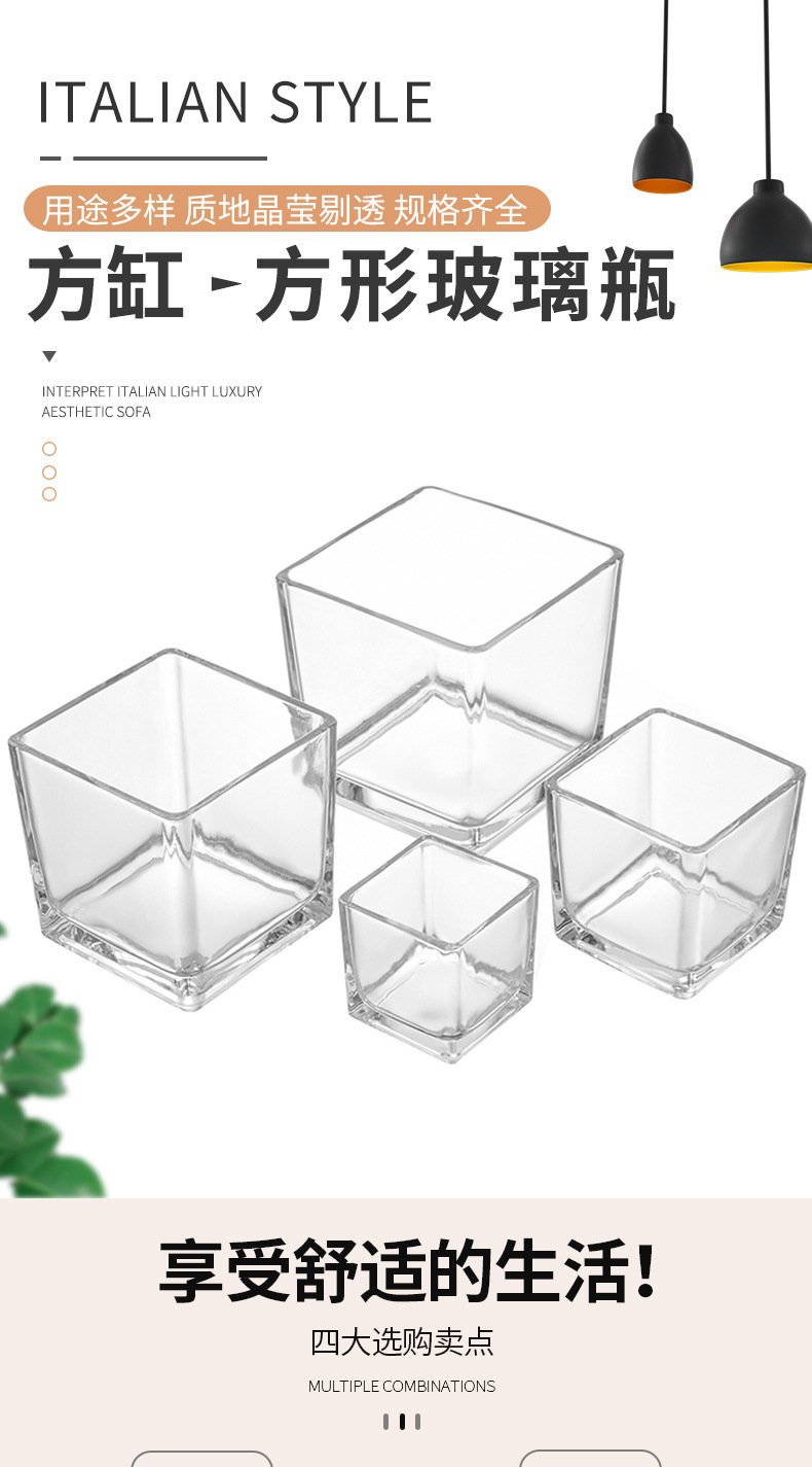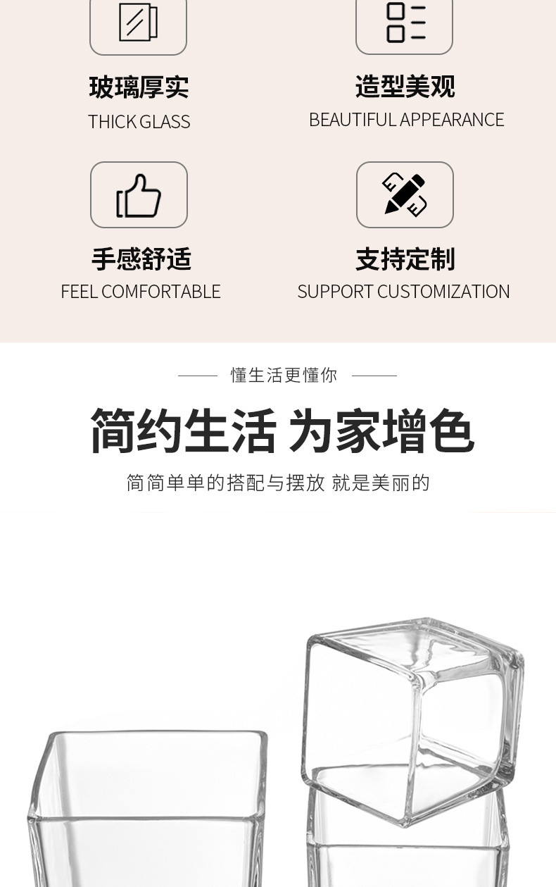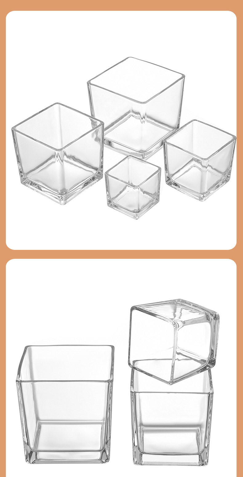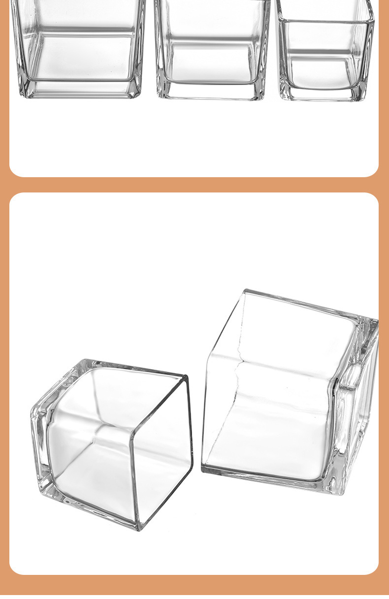 透明な正方形のキャンドルカップ厚みのあるガラス自家製アロマセラピー空のカップ多肉植物ディスプレイ植木鉢小さなカメ金魚水槽