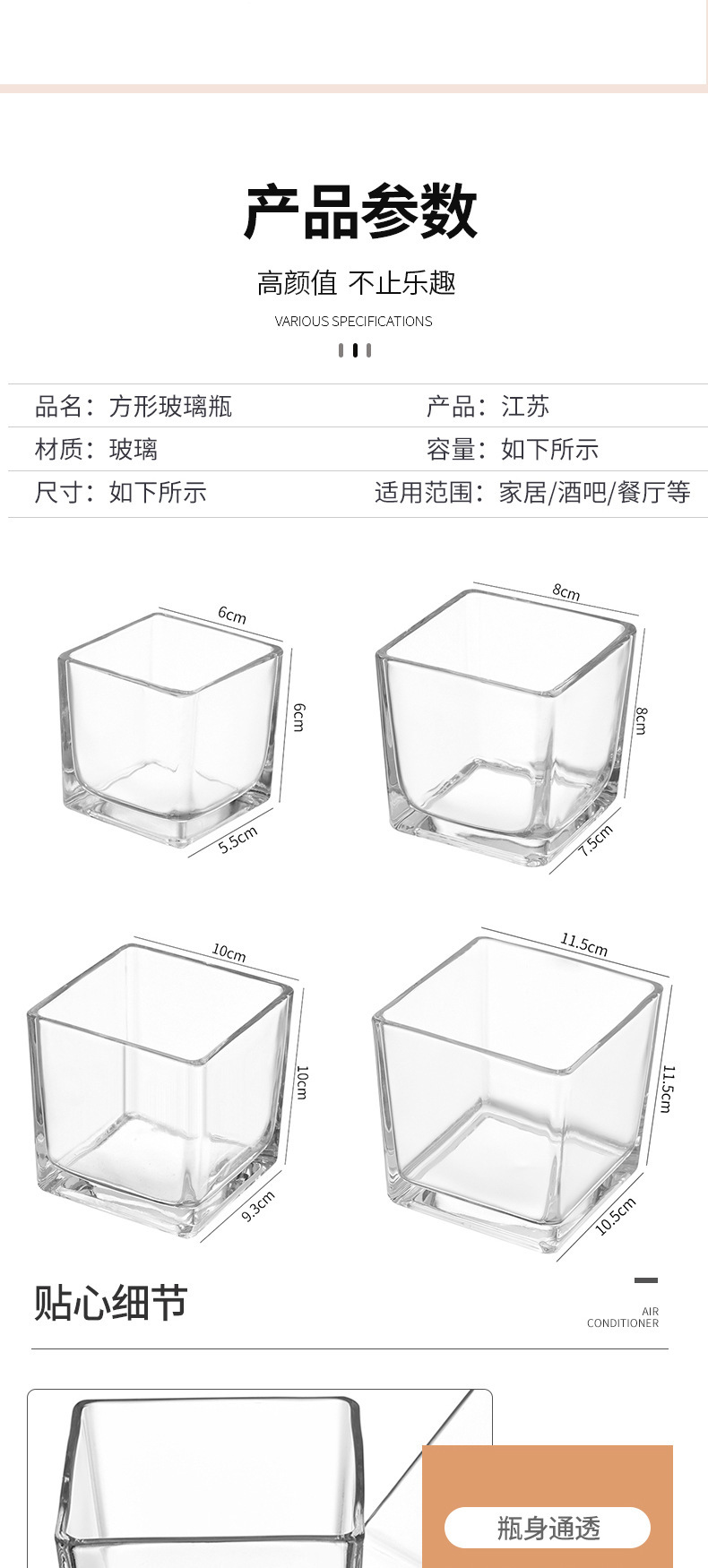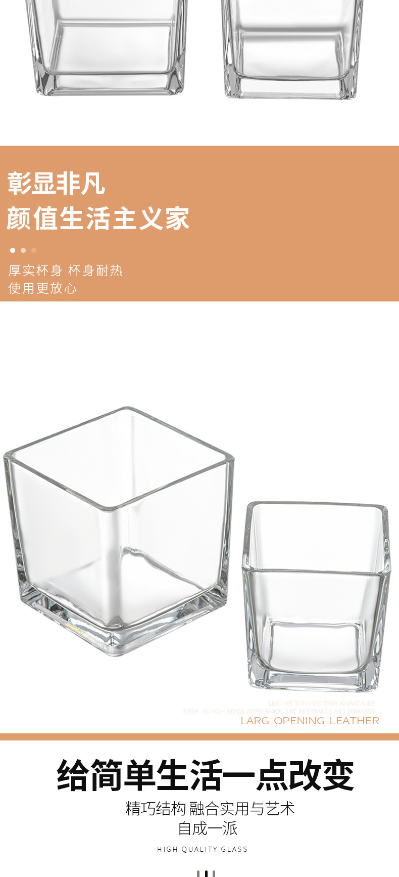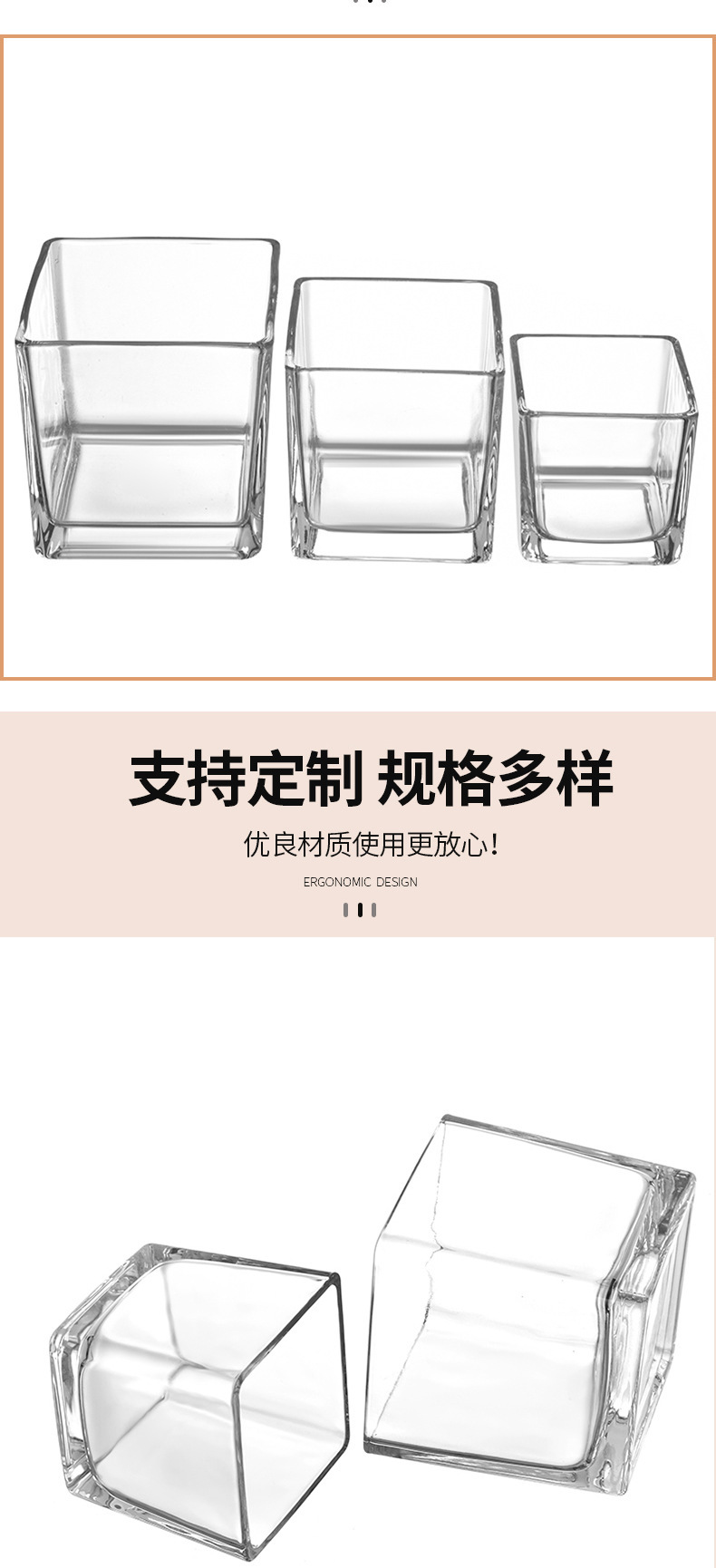透明な正方形のキャンドルカップ厚みのあるガラス自家製アロマセラピー空のカップ多肉植物ディスプレイ植木鉢小さなカメ金魚水槽