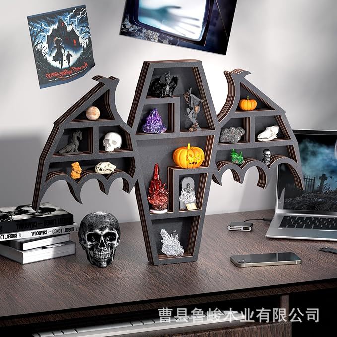 ゴシック木製壁棚ハロウィンコウモリの形の収納ラッククリスタルジュエリーディスプレイラックジュエリーラック