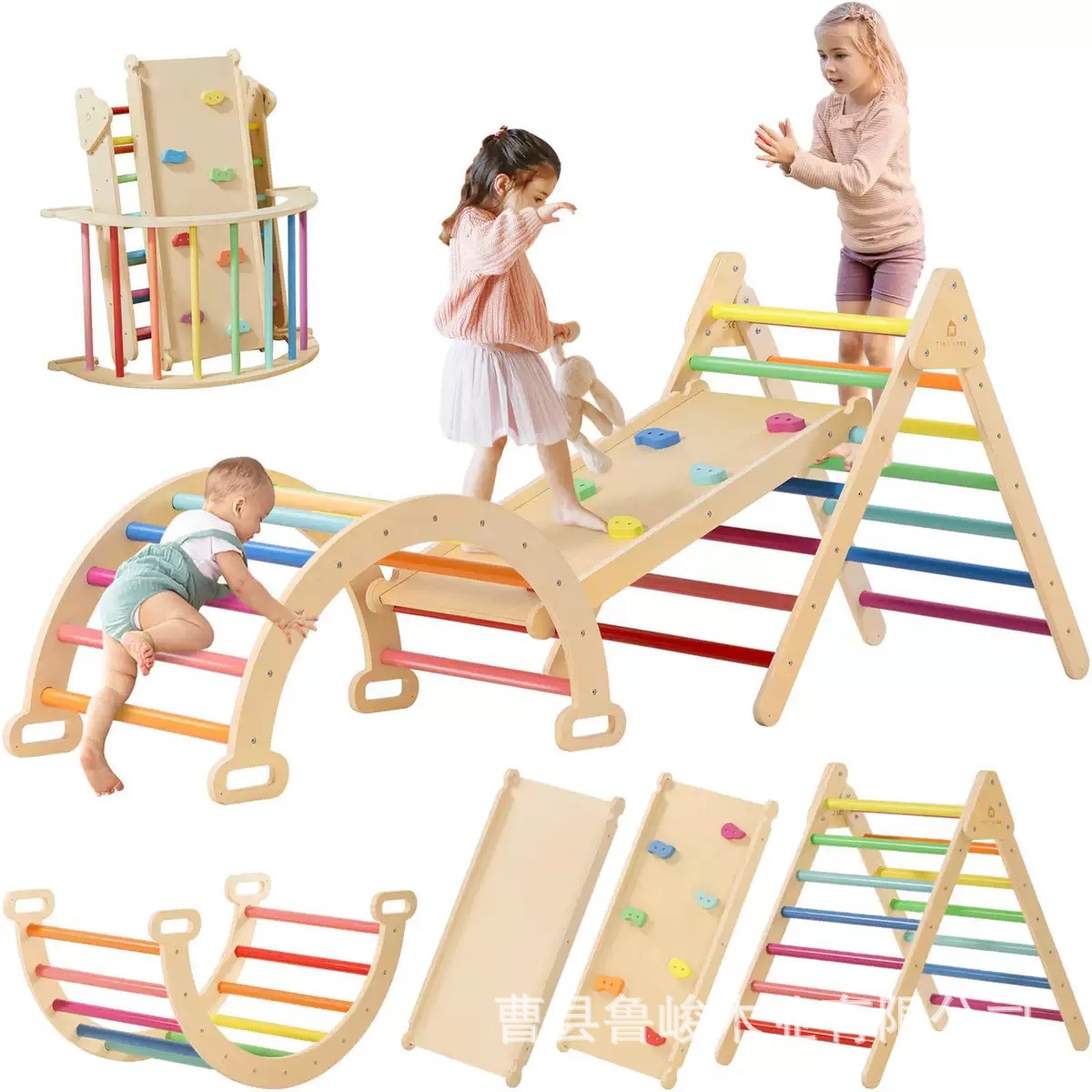 木製子供用クライミングフレーム、小さな子供用おもちゃのクライミングフレーム、コンビネーションスライド、感覚トレーニングクライミングおもちゃ
