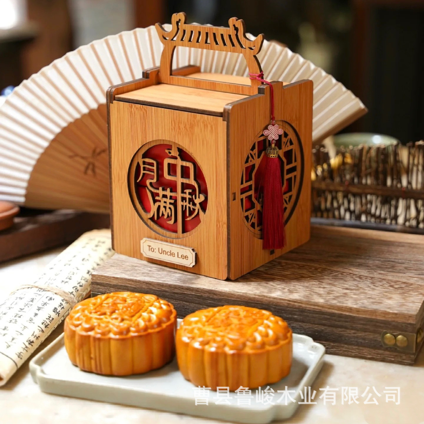 中秋節木製包装箱ポータブル二層スナック塩漬けアヒルの卵収納ボックスお土産茶箱月餅箱