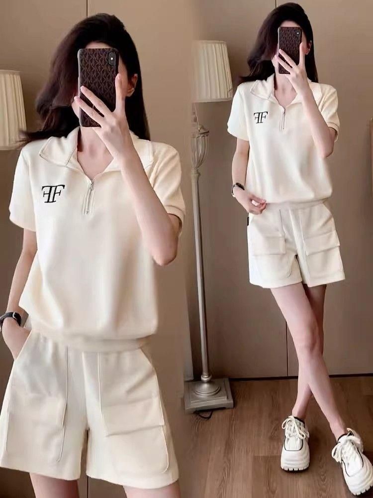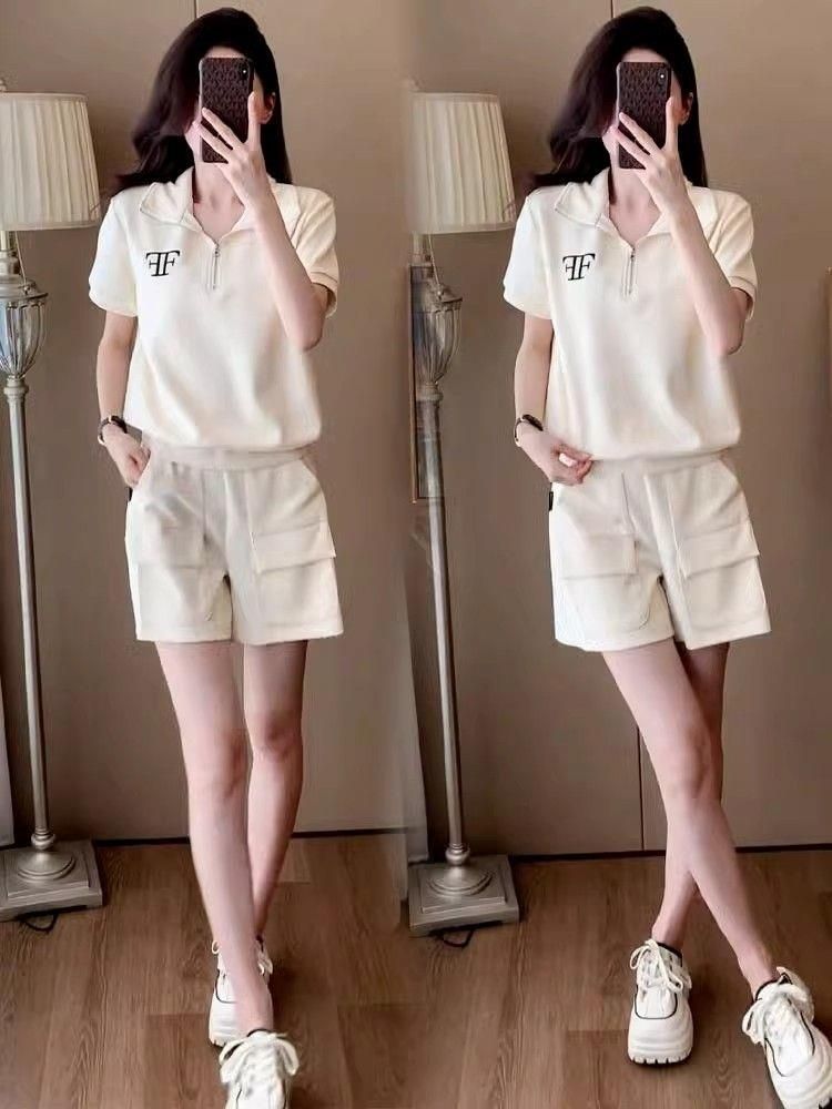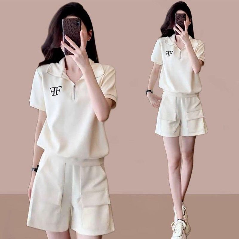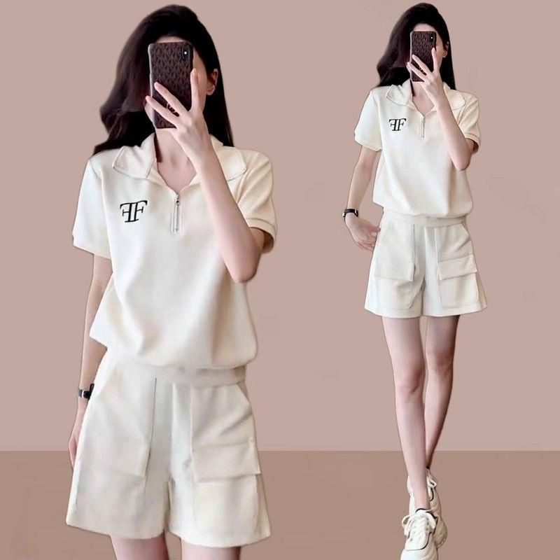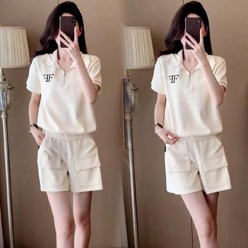 クロスボーダー外国貿易ファッションカジュアルスポーツウェアスーツ女性夏ゆるい洋気小柄半袖ショートパンツ2点セット