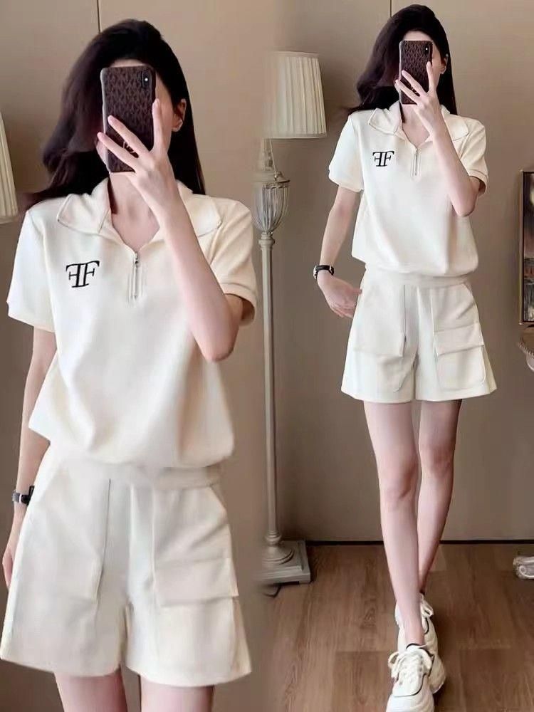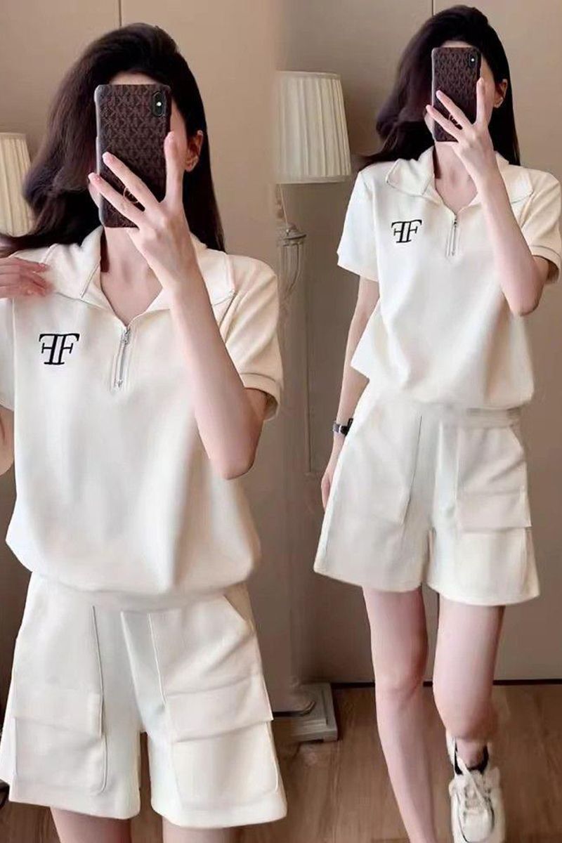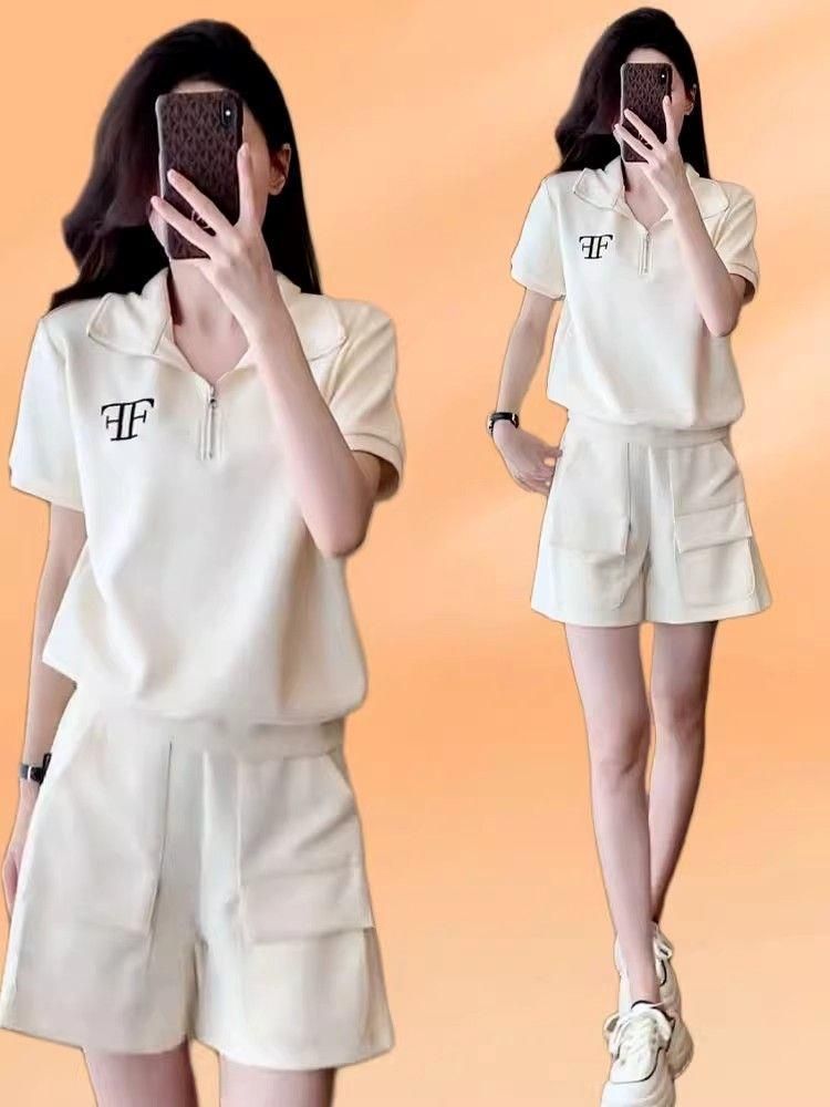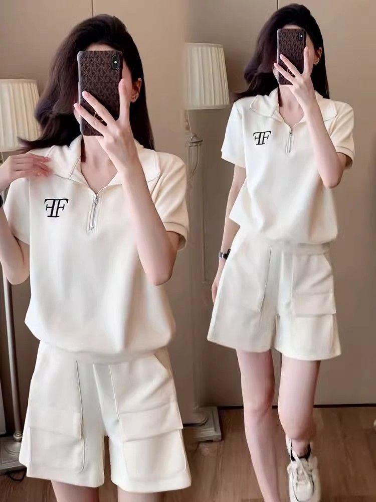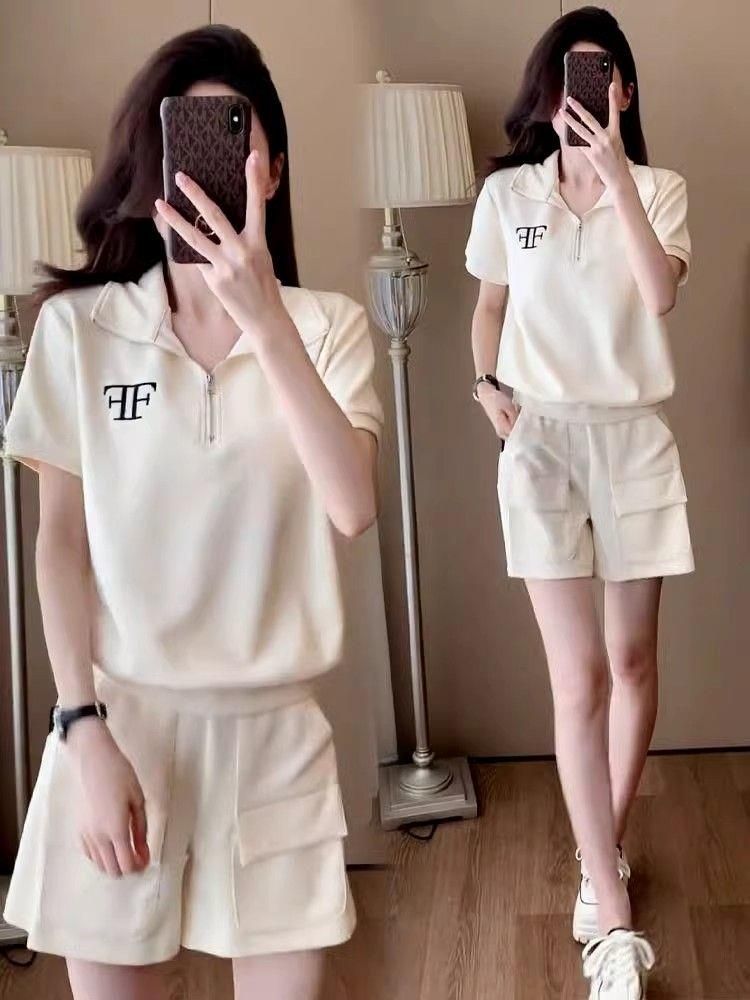 クロスボーダー外国貿易ファッションカジュアルスポーツウェアスーツ女性夏ゆるい洋気小柄半袖ショートパンツ2点セット