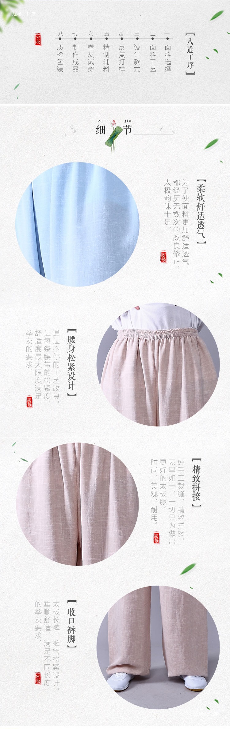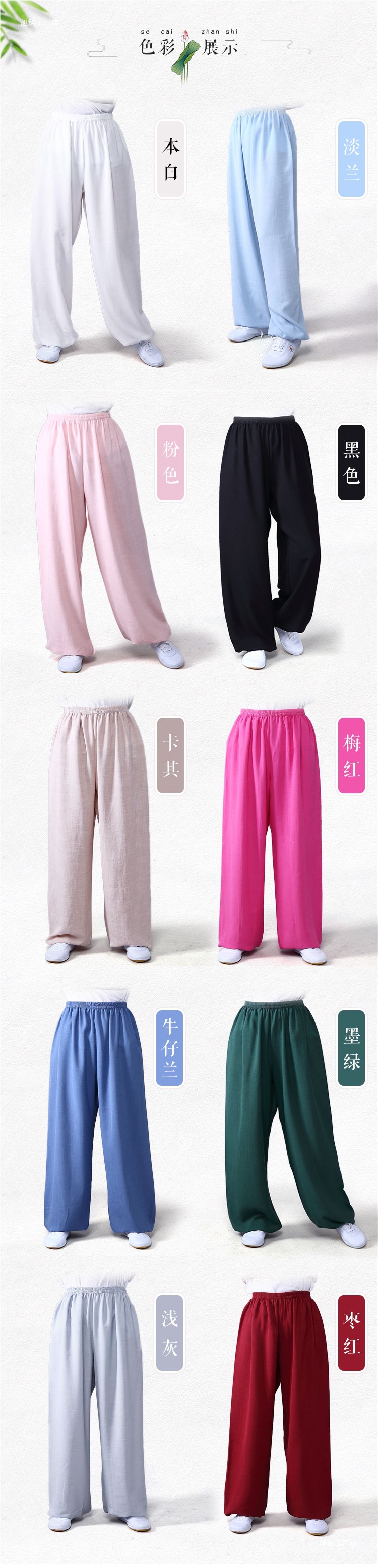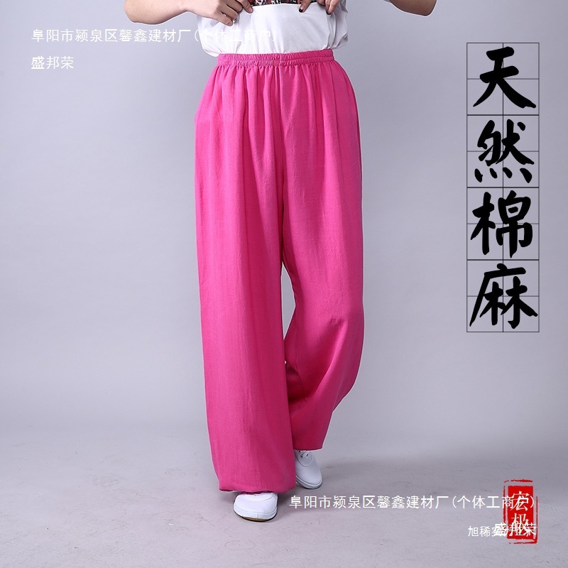 綿とリネンの夏の太極拳パンツ、男性と女性の練習パンツ、ブルマー、武道パンツ、ヨガ通気性太極拳朝練パンツ、在庫あり