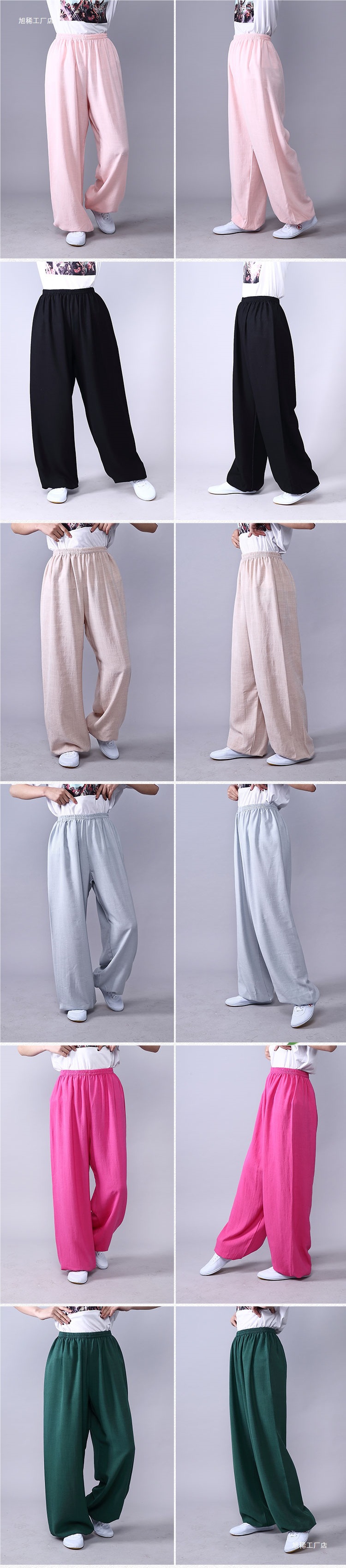 ヨガの女性の練習のズボンの男性のズボンの太極の夏の朝の練習の太極の服のズボンの灯籠のズボンの綿麻の通気性の武術のズボン