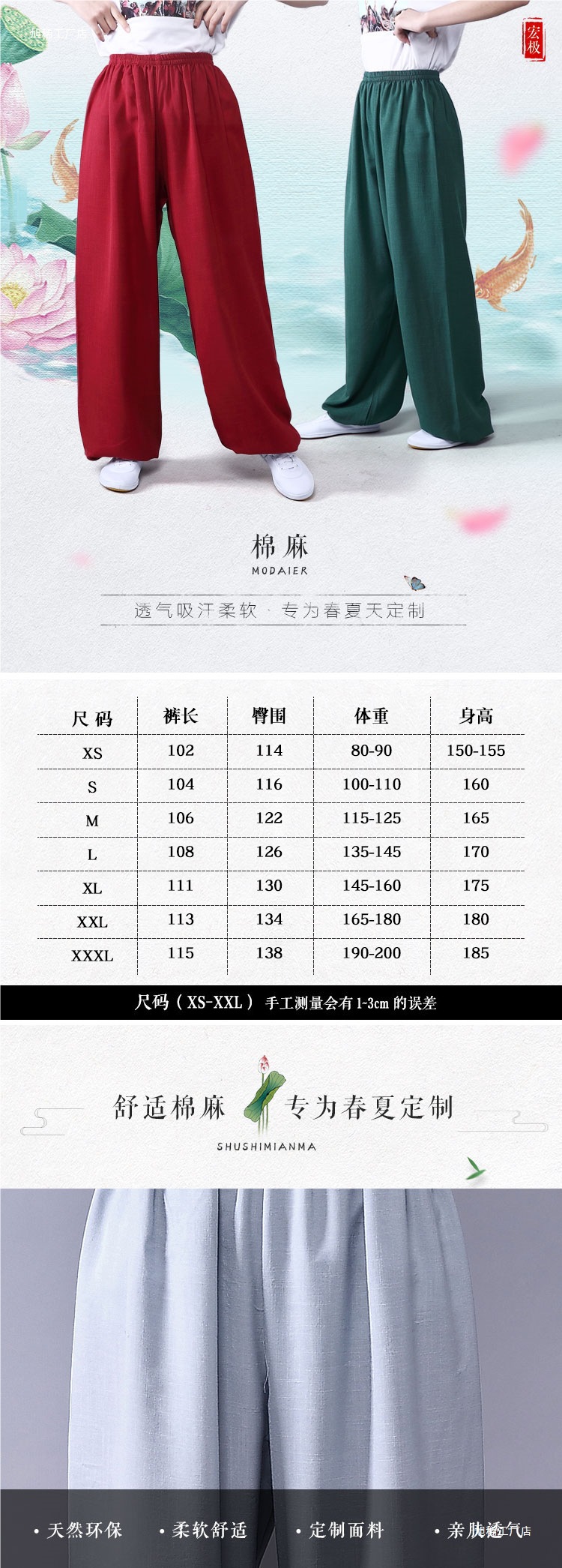 宏極綿麻夏太極服練習ズボン女性灯籠ズボン武術ズボンヨガズボン通気太極ズボン男