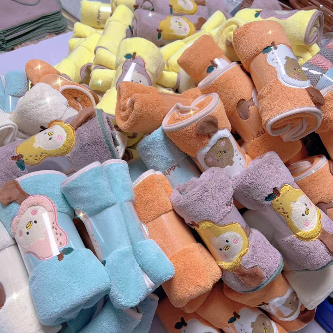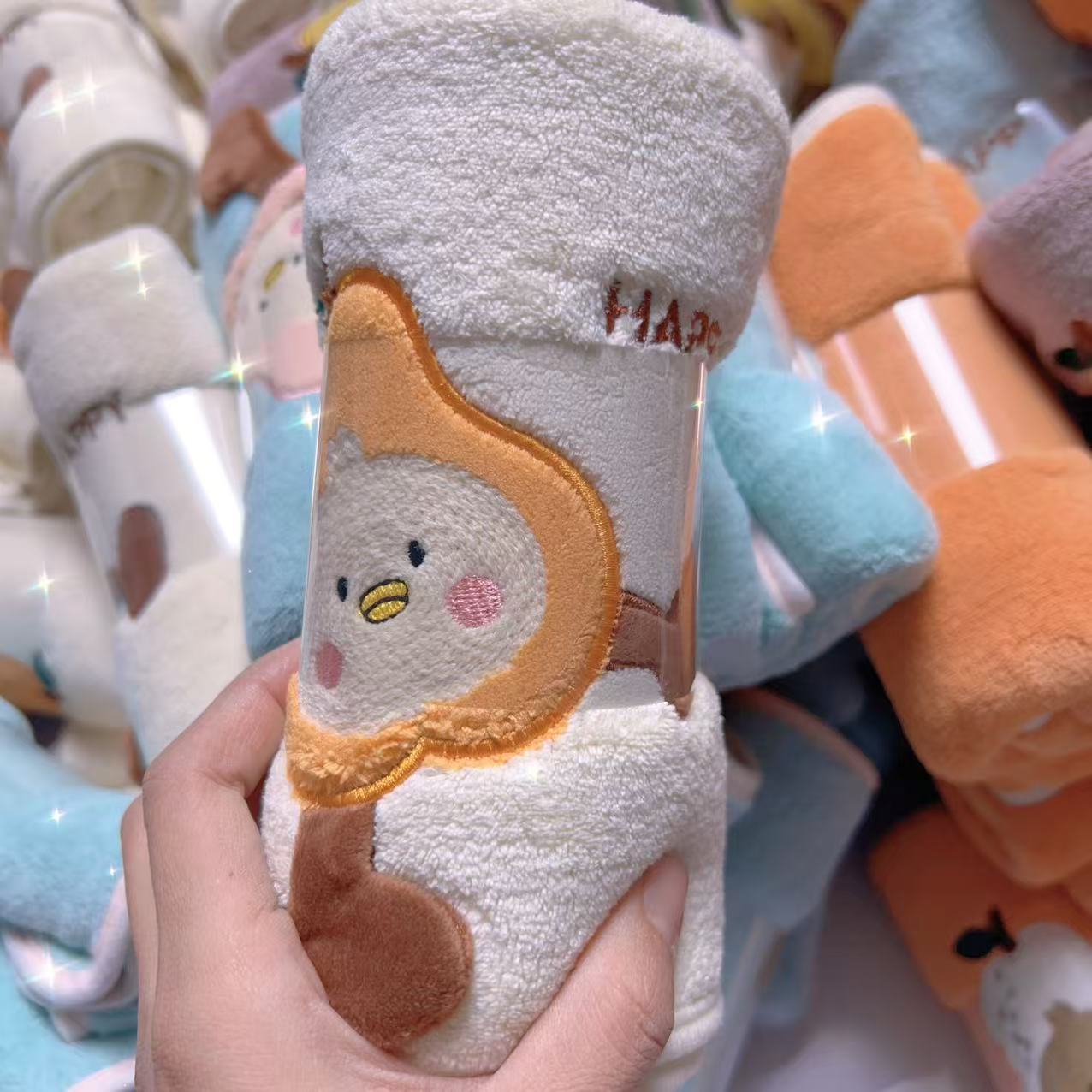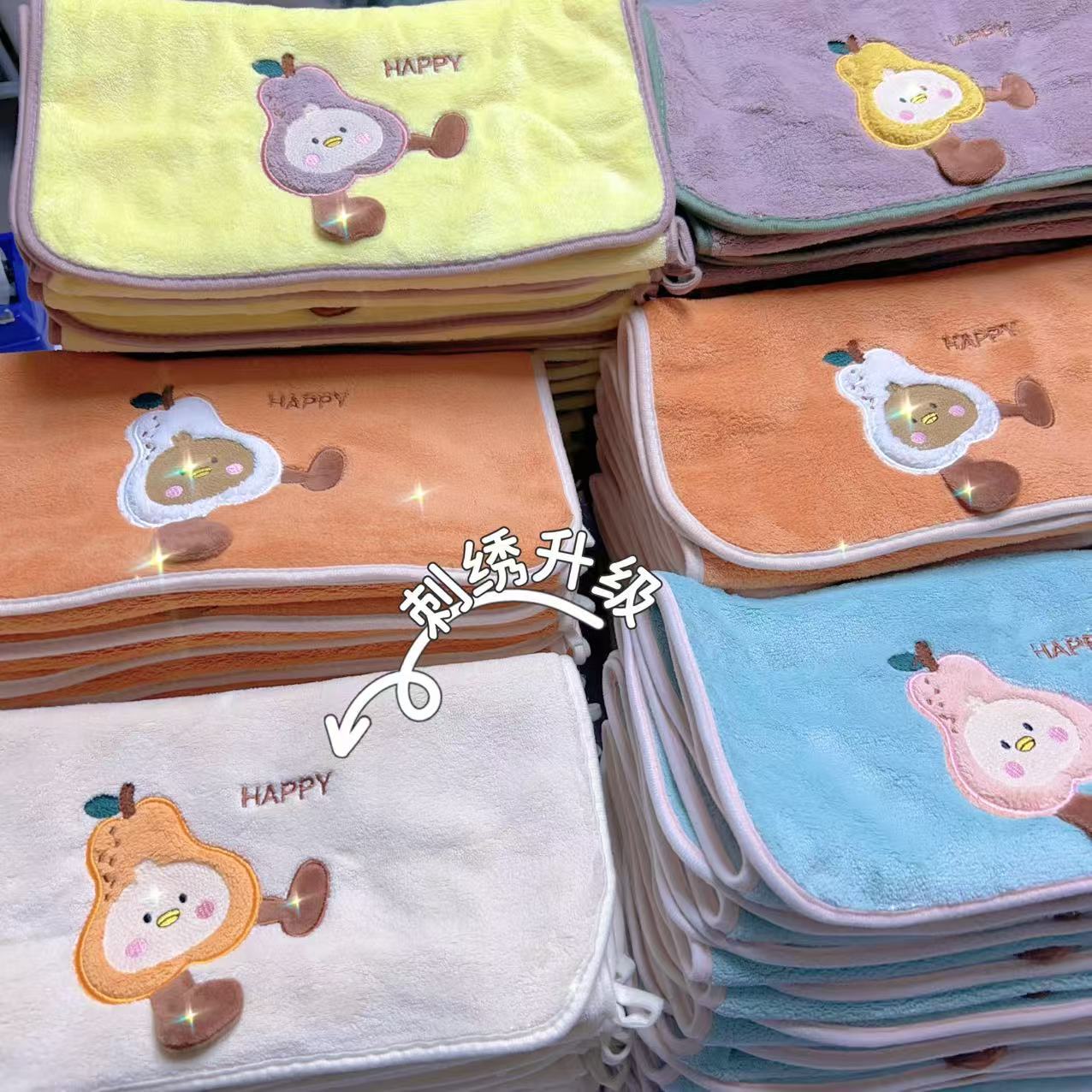新款珊瑚绒加厚卡通刺绣毛巾浴巾套装成人情侣家用柔软吸水不掉毛