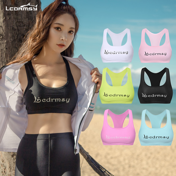 韓国ダイビングスーツ女性の新しい速乾性水着ベスト女性のタイトな下着リムなし耐衝撃シュノーケリングスポーツブラ