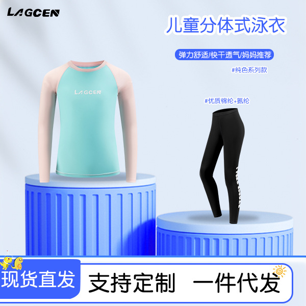 女の子用水着スプリット長袖日焼け止め中型および大型子供用ボクサーブリーフ子供用速乾性ツーピース学生水着卸売