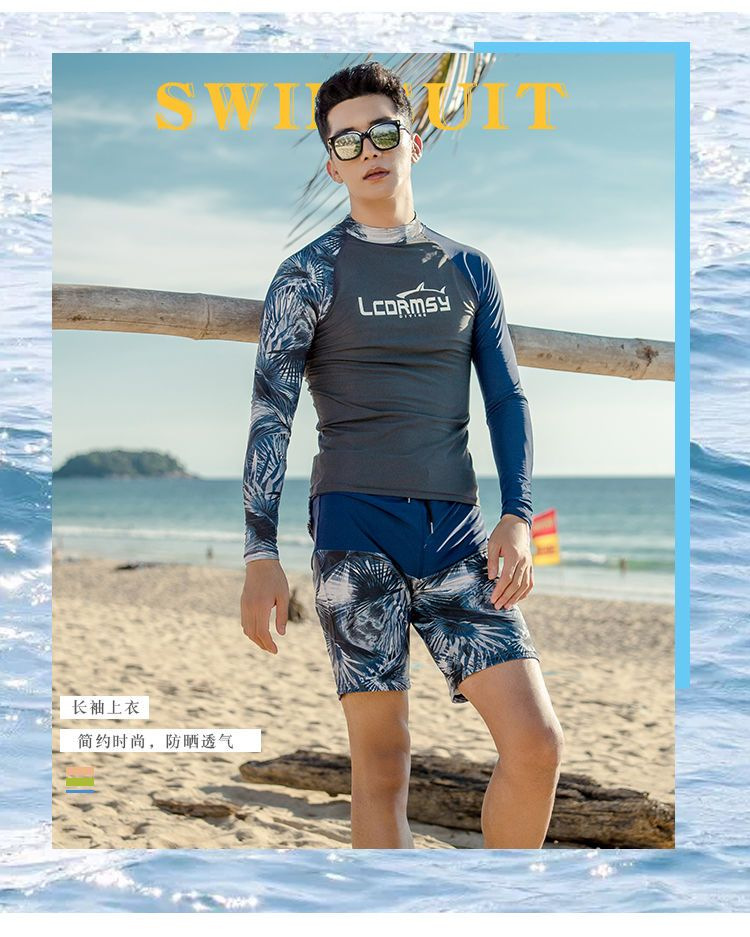 軒海分体水着男性モデル平角大サイズ男性水着セット成人半袖上着五分ズボン潜水服