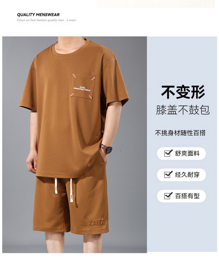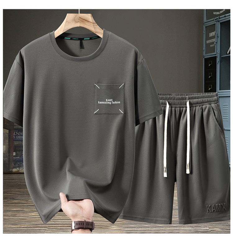 スポーツウェアの男性スーツの夏の大きいサイズのゆったりした半袖と太ったショートパンツのtシャツの2つのセットのファッションブランドのtシャツ