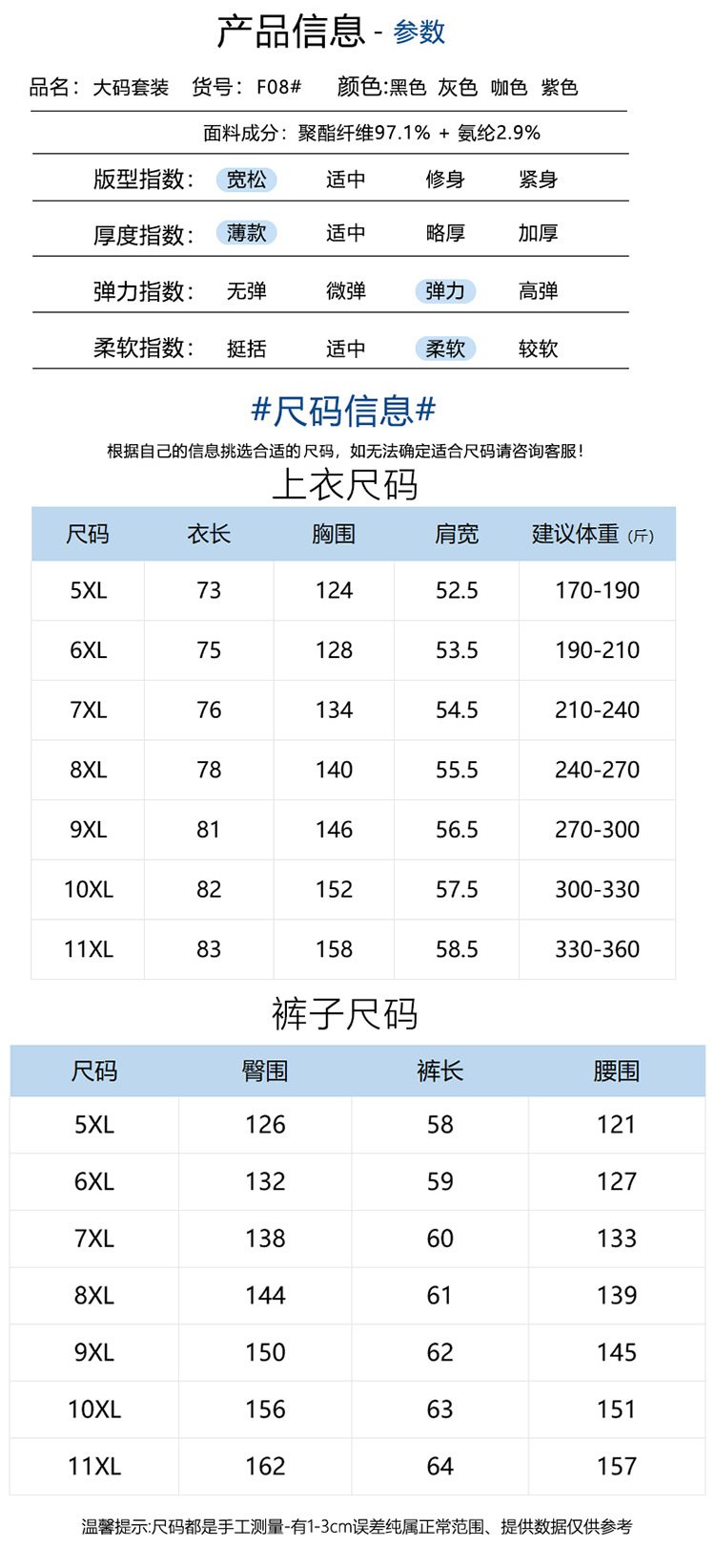 サイズ 5XL は 85-95kg をお勧めします,6XL は 95-105kg を推奨します,7XL は 105-120kg を推奨します,8XL は 120-135kg を推奨します,9XL は 135-150kg を推奨します,10XL は 150-165kg を推奨します,11XL は 165-180kg を推奨します