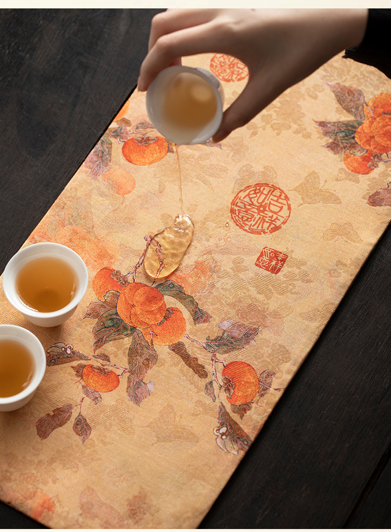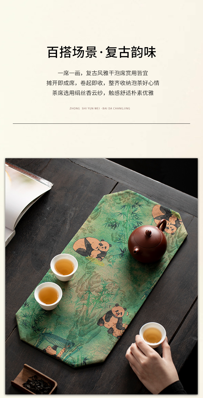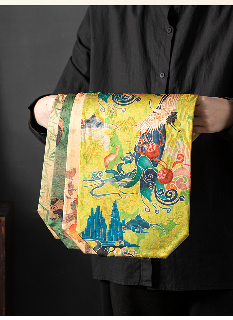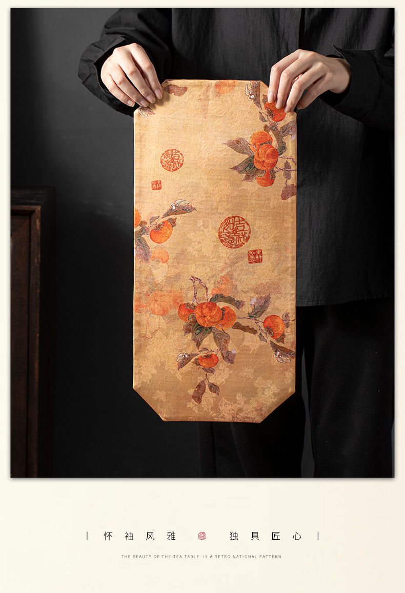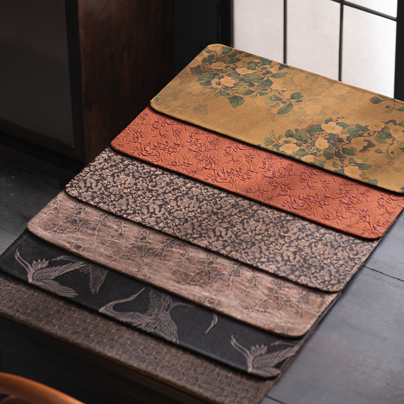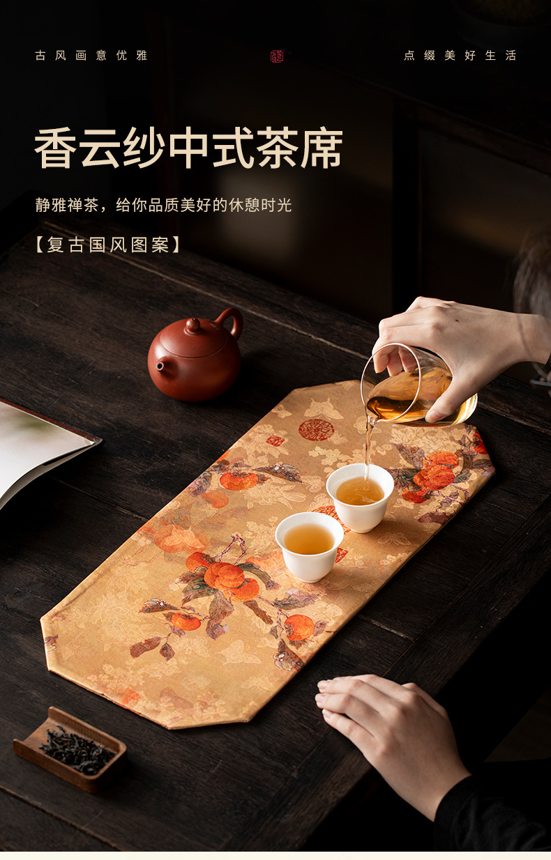 新しい中国風の両面ティーマット、軽くて豪華なハイエンド模造香雲ガーゼドライバブルマット、禅レトロなロングティーテーブルクロス