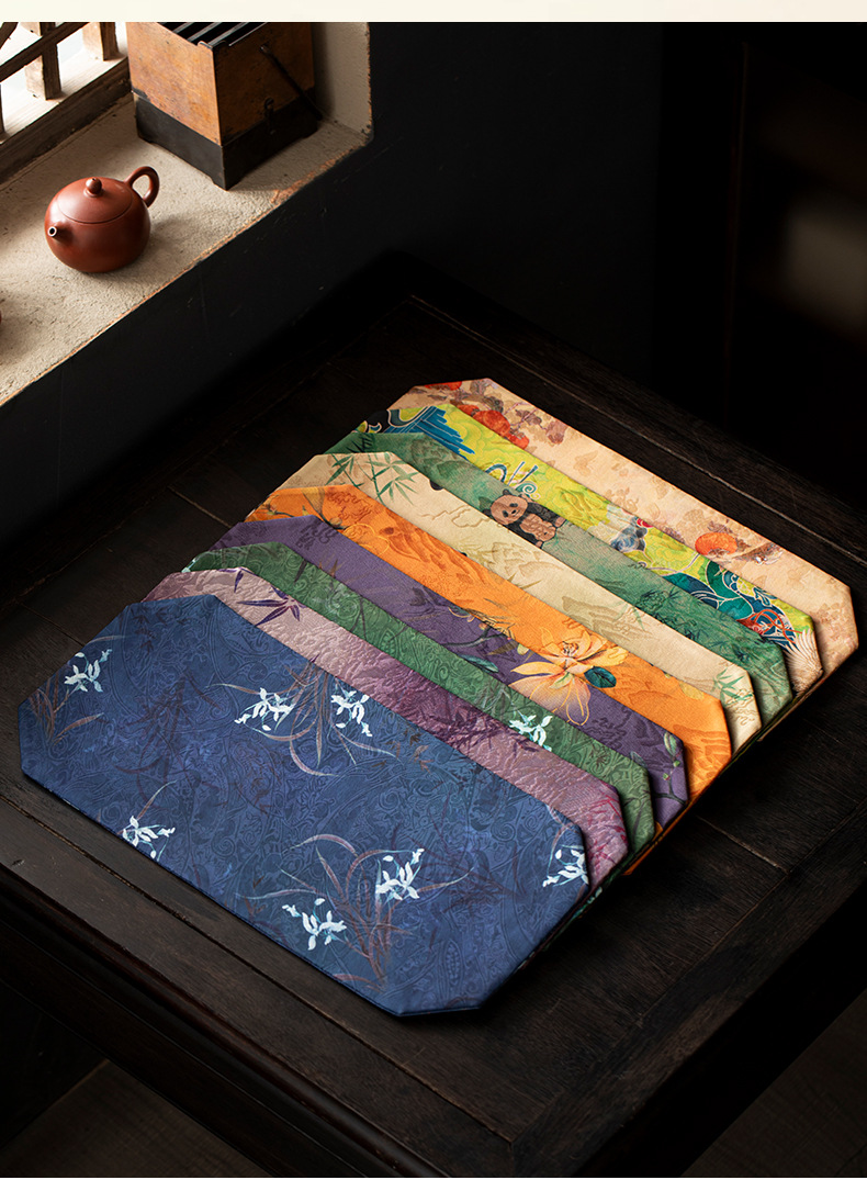 シルクの茶席の古い材料の香雲の紗の乾いた泡のマットのシルクの布の芸のお茶のマットは熱を隔てて茶道のテーブルの旗の家庭の茶席を敷きます。