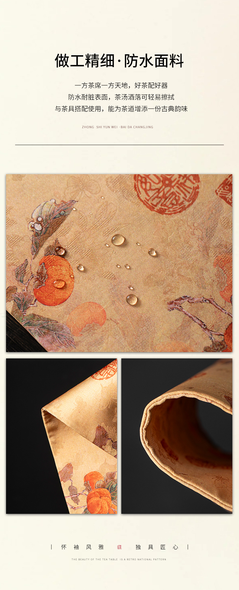 老料香云纱双面茶席新中式禅意复古干泡垫防水长条茶桌布艺批发