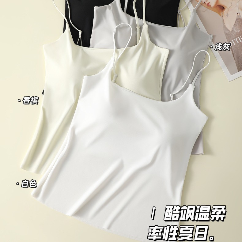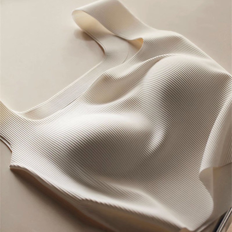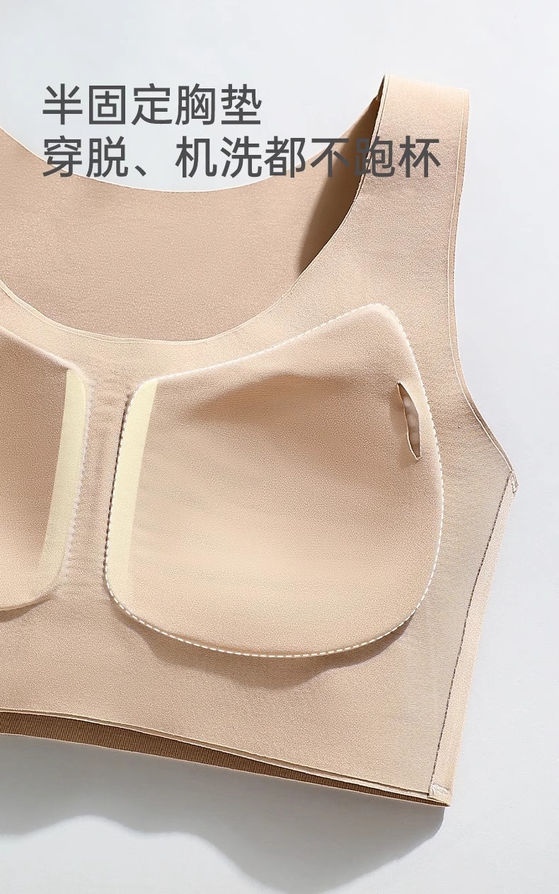 起爆夏ナイロン無痕氷糸美背ストラップブラジャー連体固定カップの中に底付きベストを着ている女性