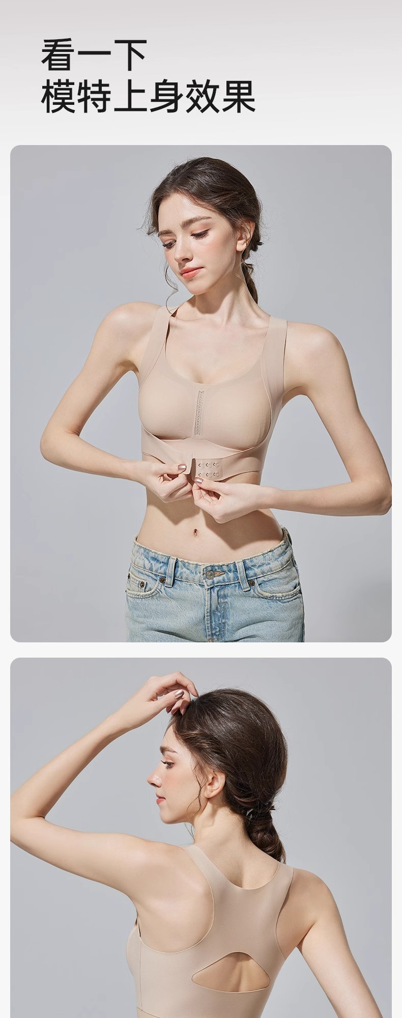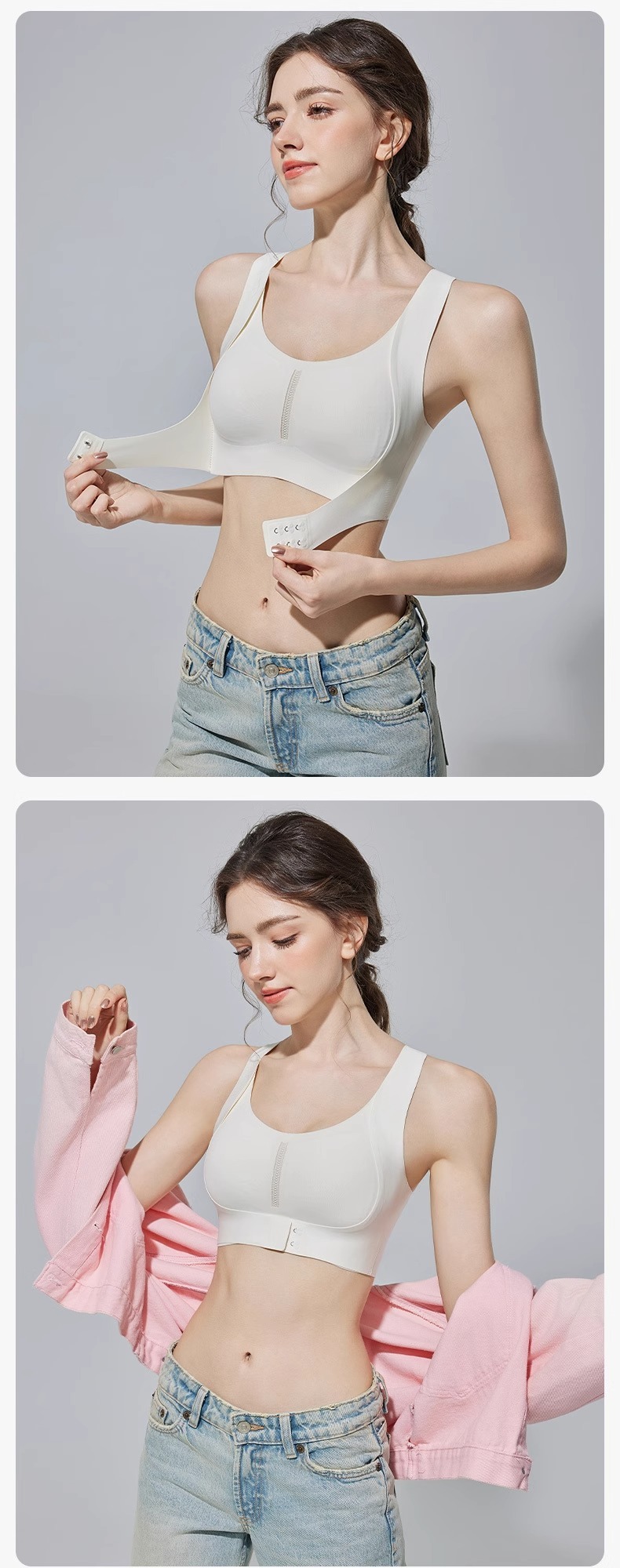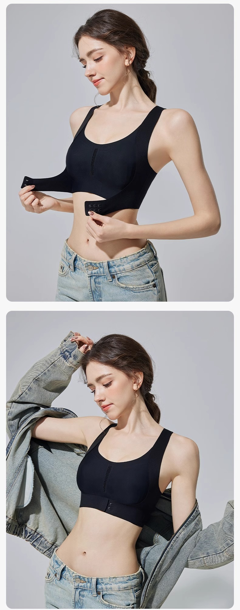 女性用姿勢矯正下着、フロントボタン、プッシュアップ、たるみ防止、猫背矯正、肩開き、シェイプアップ、シームレススポーツバックブラ