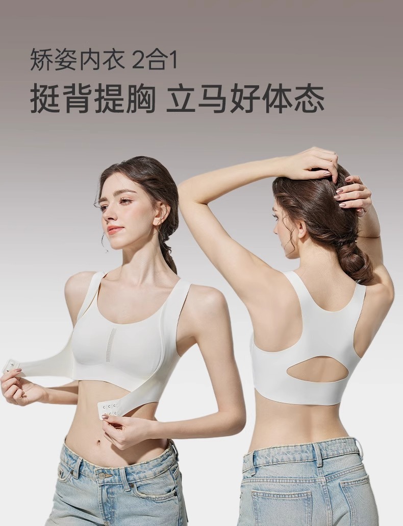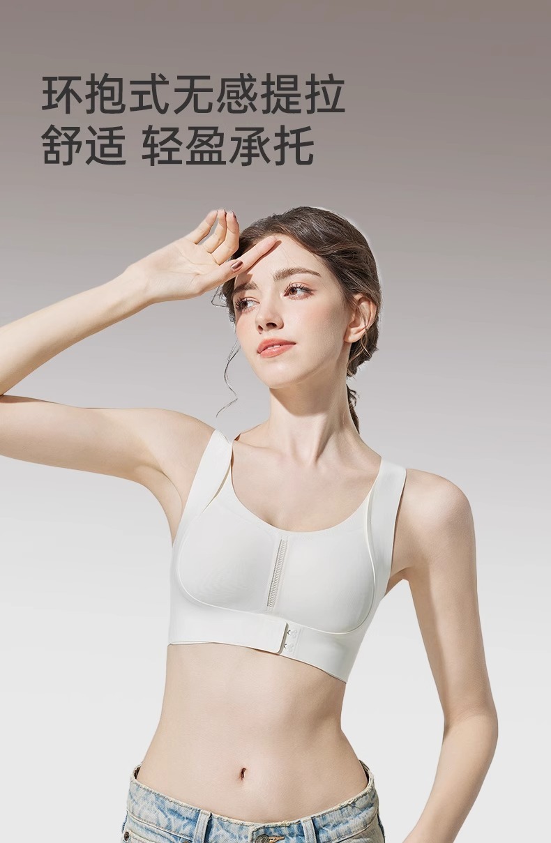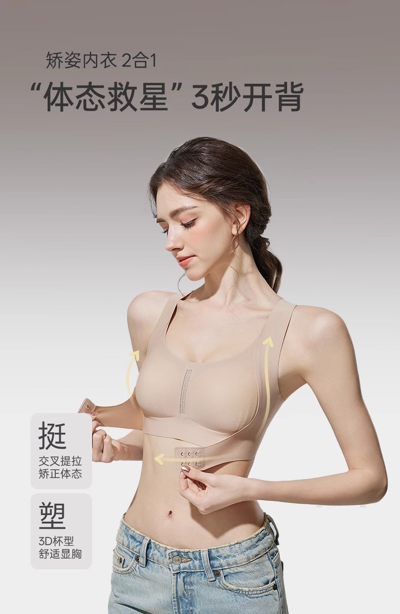 女性用姿勢矯正下着、フロントボタン、プッシュアップ、たるみ防止、猫背矯正、肩開き、シェイプアップ、シームレススポーツバックブラ
