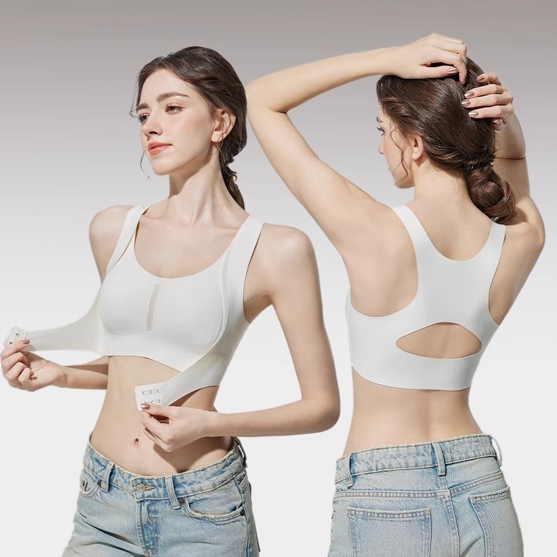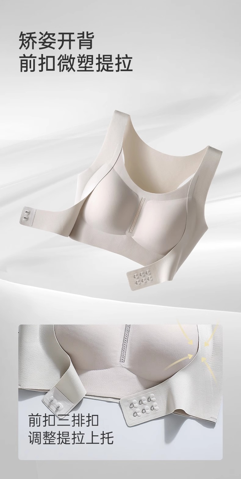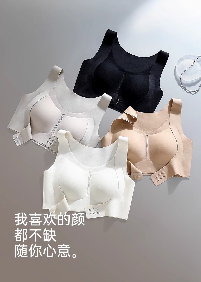 新しい通気性のあるフロントボタンプッシュアップ下着リキッドファンデーションブラジャーリムなし目に見えない美しいバック下着バッククリップ