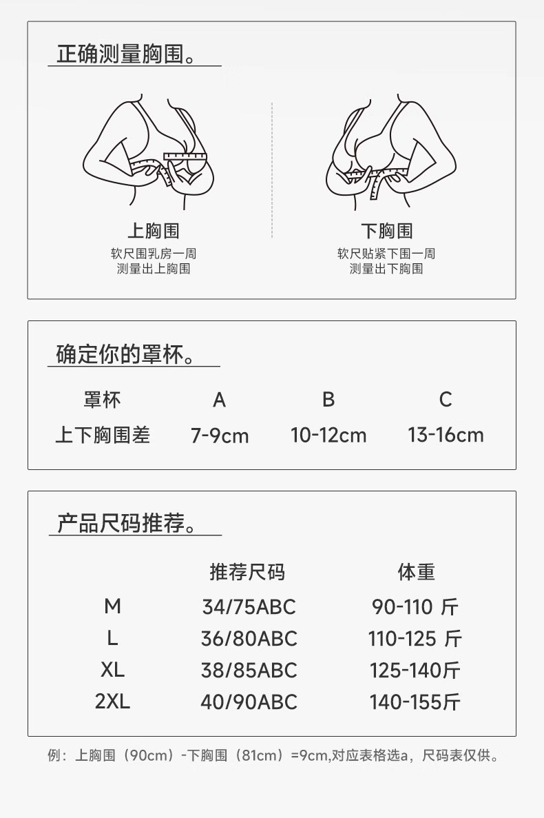 サイズ M 【34/75ABC(約45-52.5kg)】,L 【36/80ABC(約52.5-60kg)】,XL 【38/85ABC(約60-67.5kg)】,XXL [40/90ABC(約67.5-75kg)]