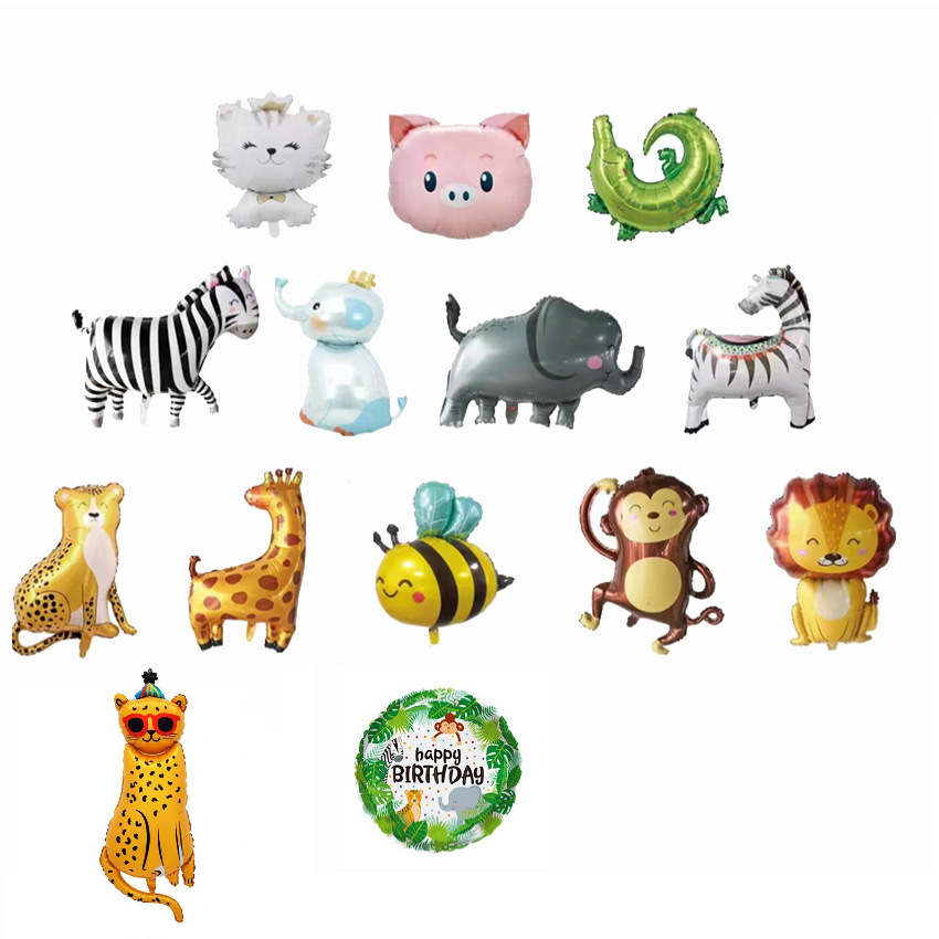 ジャングルの動物のライオンの象の漫画のアルミニウム膜の風船は無毒です。