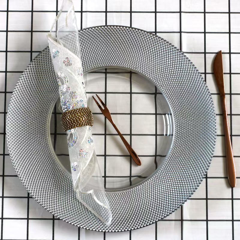 洋式ウェディングガラス盤銀色ガラス盤サンプル間装飾ガラス盤銀色ガラスボウル