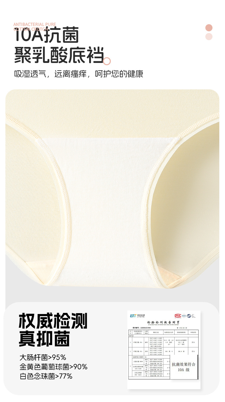 60 モーダル女性下着ポリ乳酸シームレス無地ミッドウエスト快適な拡張クロッチブリーフ女性用グレード 10A