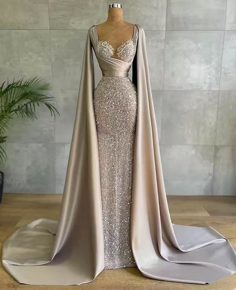 外国貿易新しいワンショルダースパンコールイブニングドレス 2025 新しい気質スリムフィッシュテールドレスパーティーキャットウォークイブニングドレス