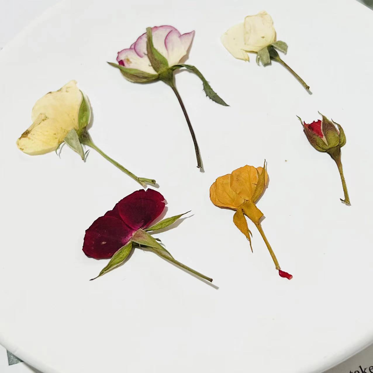 枝付きサイドプレスベージュローズドライフラワーエンボス加工材料卸売手作り diy 材料パッケージ植物標本本物の花の木