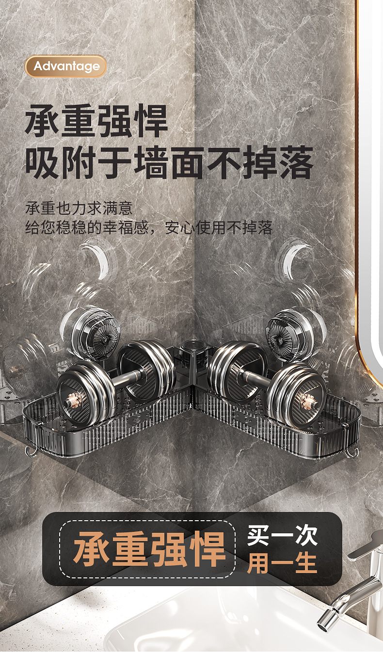 サイズ 粘着バージョンは270度回転可能、角枠収納ラック、透明白,粘着式270度回転可能なコーナー棚、透明グレー,吸盤モデルは270度回転可能なコーナー棚、透明な白を備えています,吸盤モデルは270度回転可能なコーナーシェルフ、透明グレー