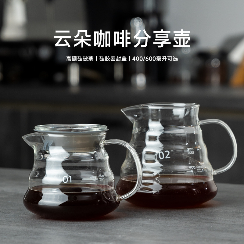 工場直売手沖コーヒーポット雲壺分享壺厚厚耐熱高ホウ素シリコンガラス手沖壺目盛り付き