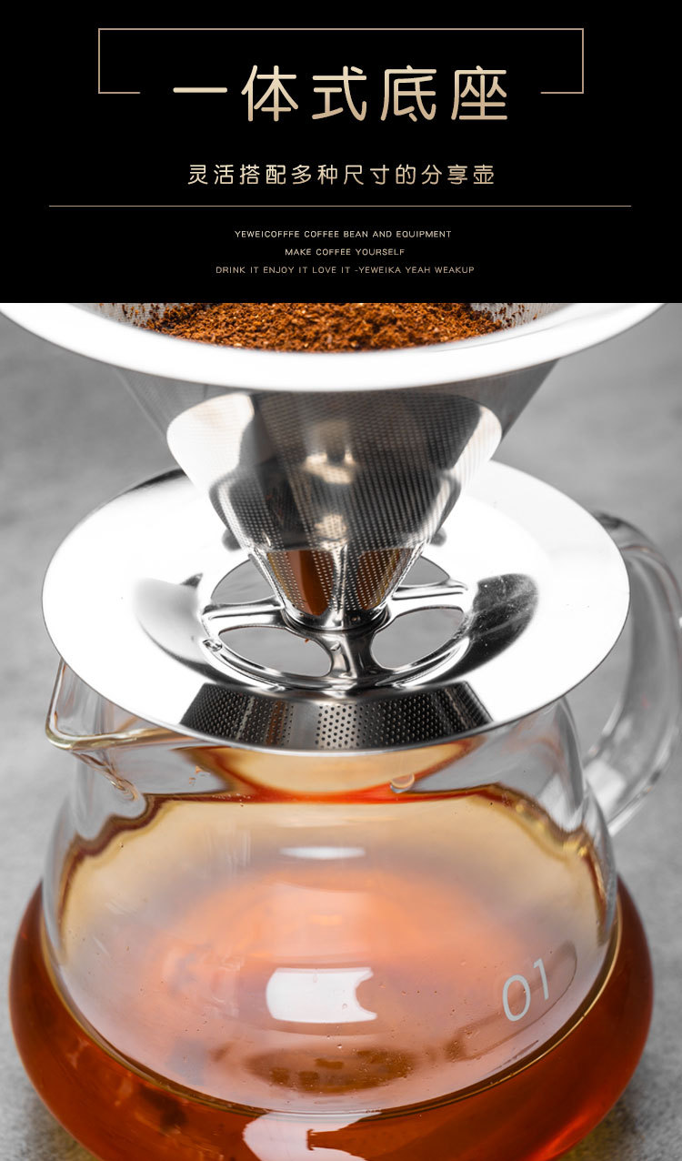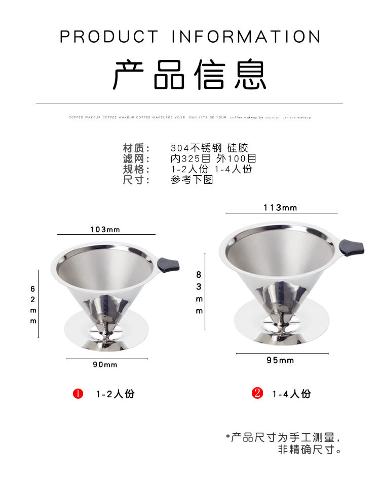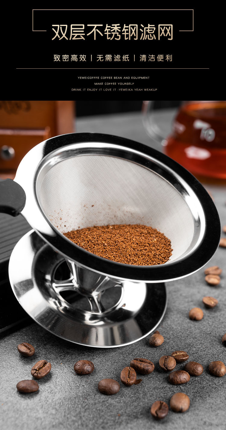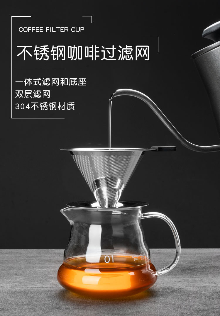 304咖啡过滤器滤网滤杯手冲咖啡器具套装免滤纸超细加密咖啡漏斗