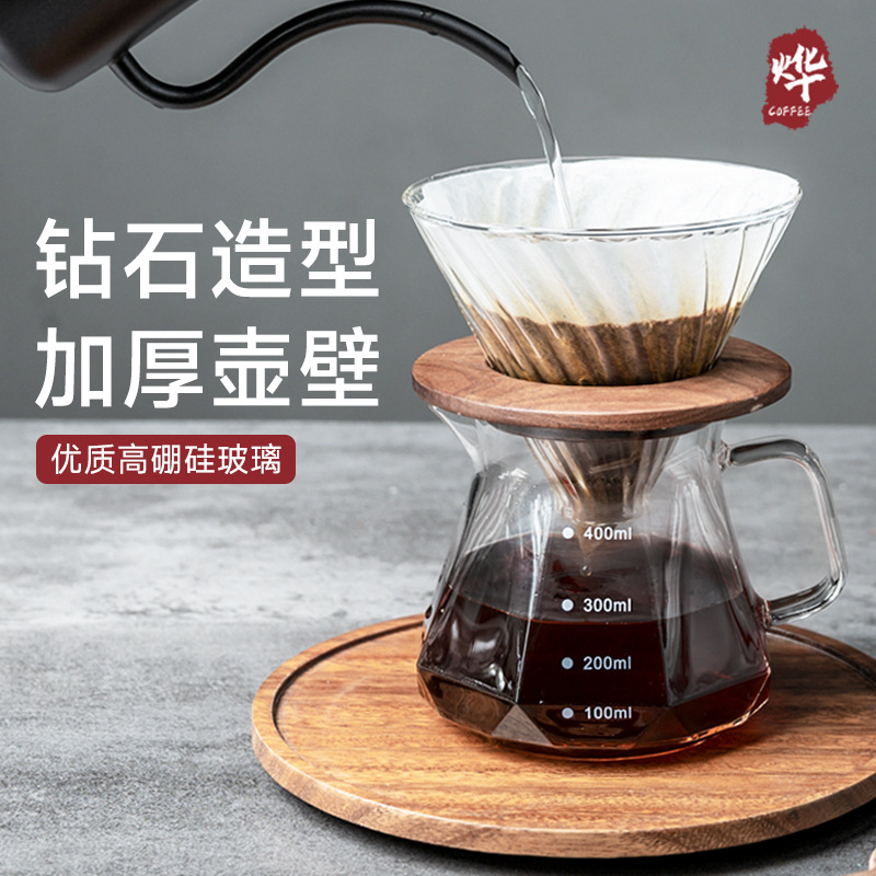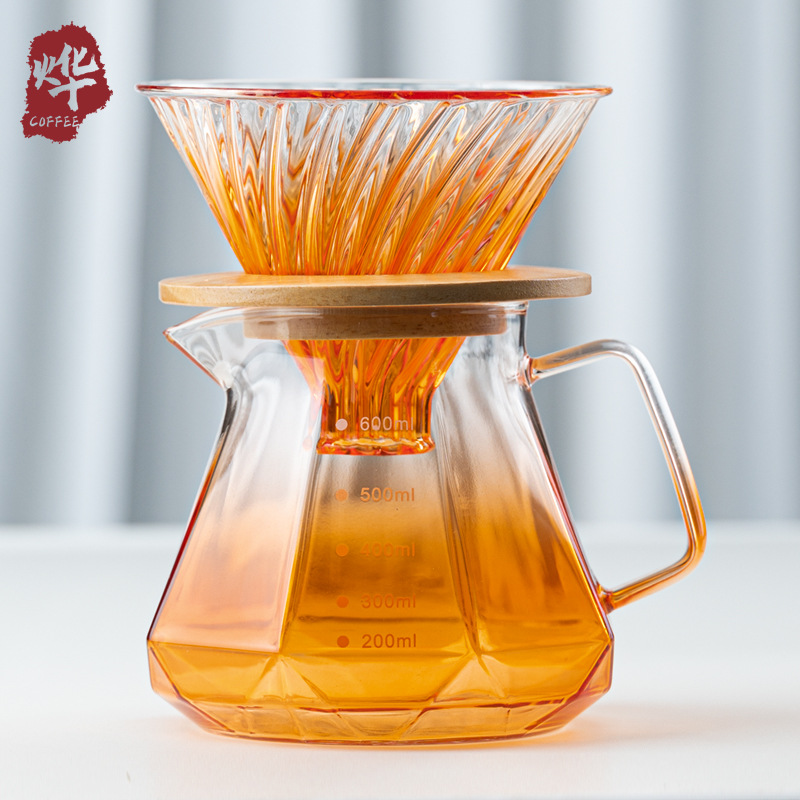 コーヒーポット八角形ダイヤモンド型コーヒー共有ポット耐熱透明器具ガラス雲壺公道カップコーヒーポット