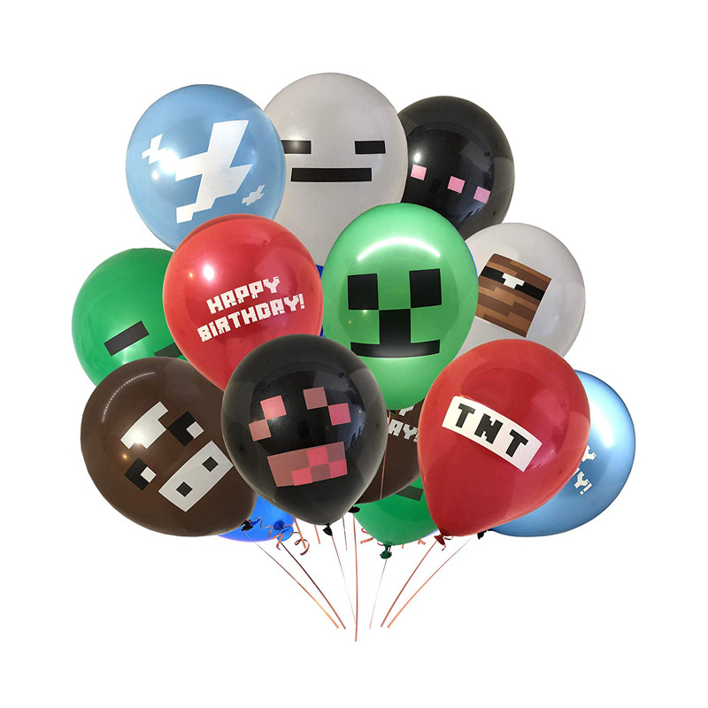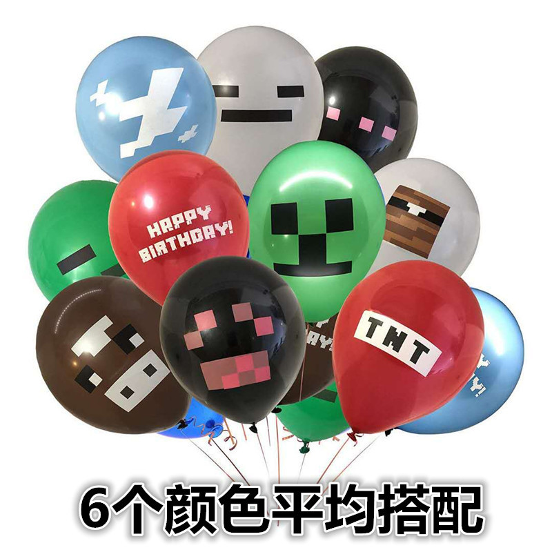 新款像素世界 我的世界 游戏装饰乳胶气球套装生日派对装饰气球