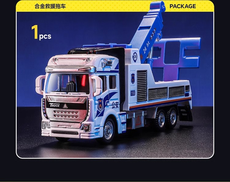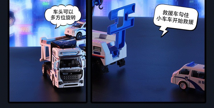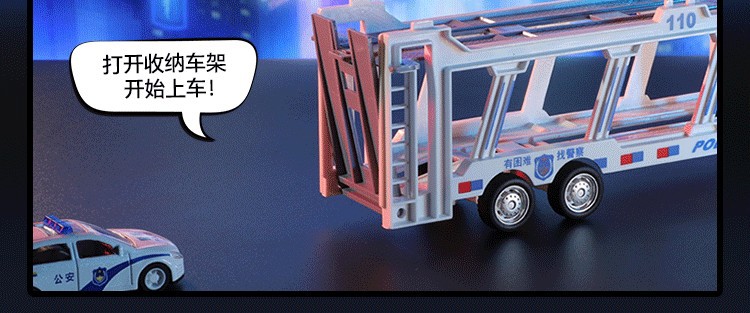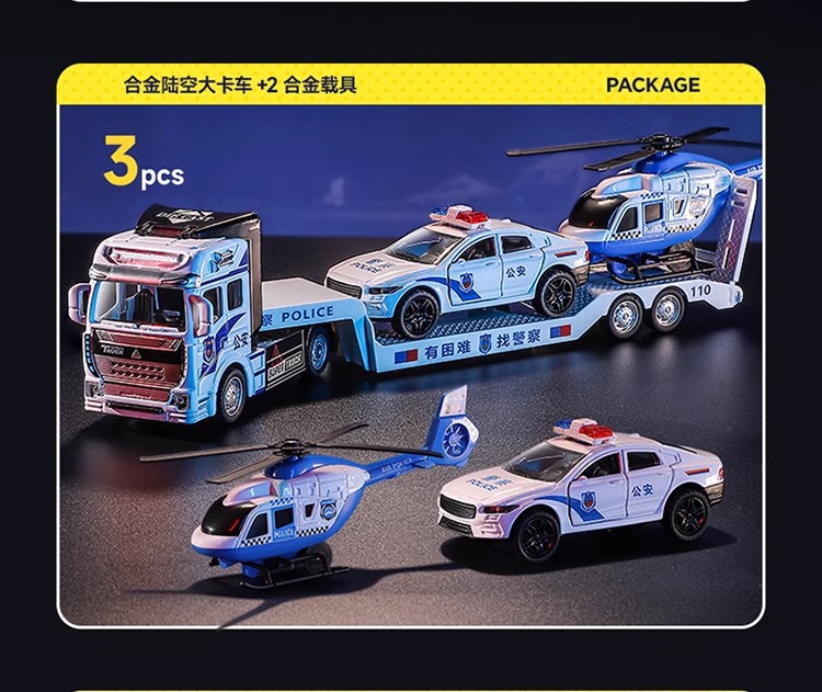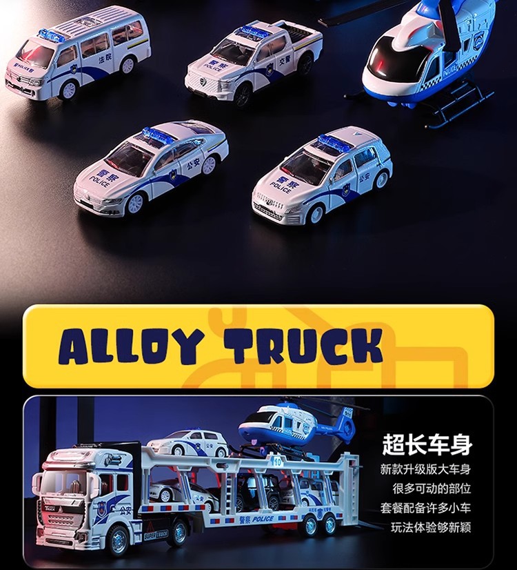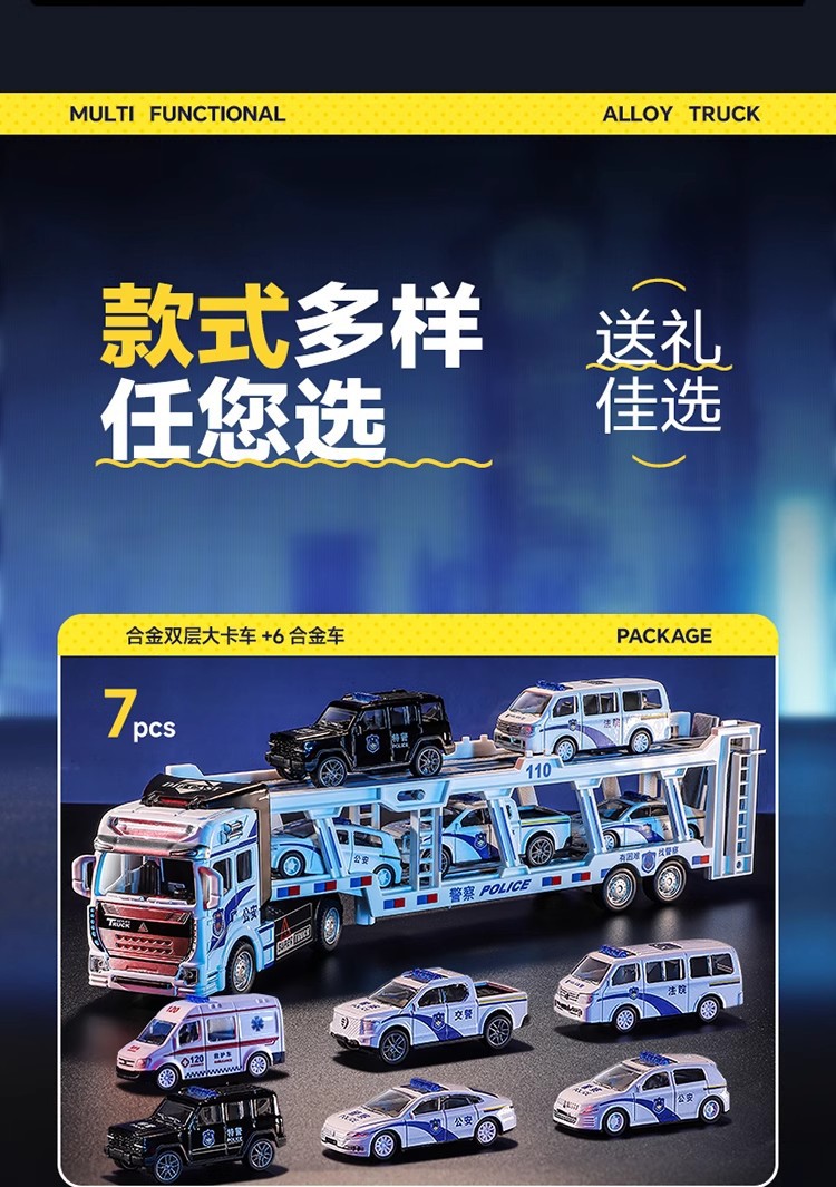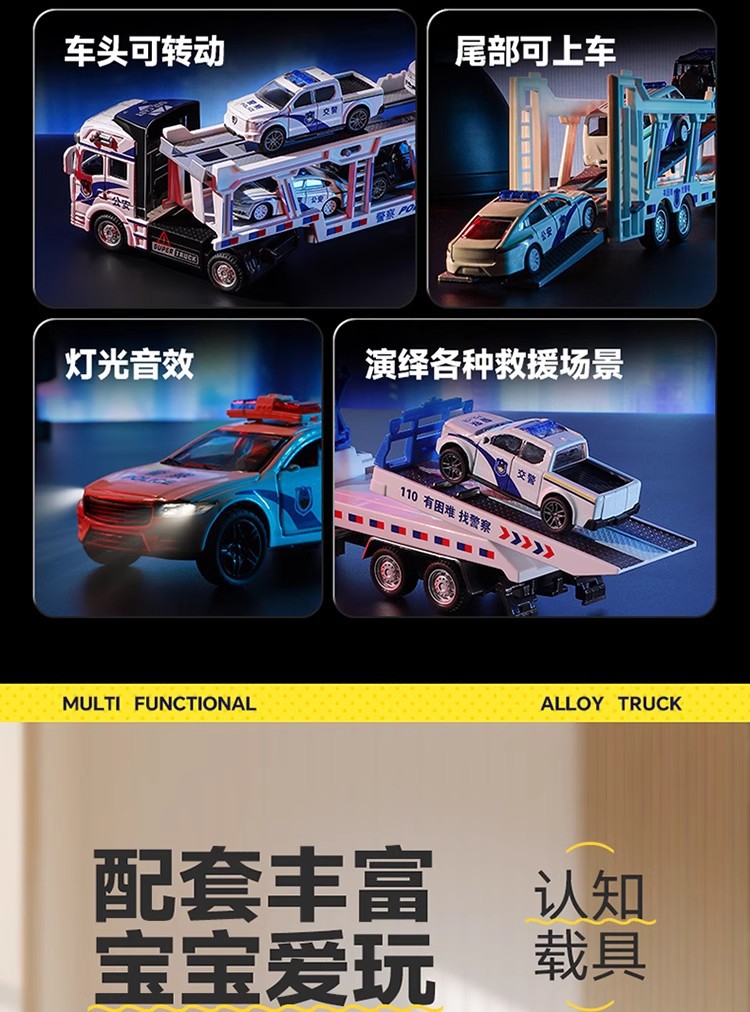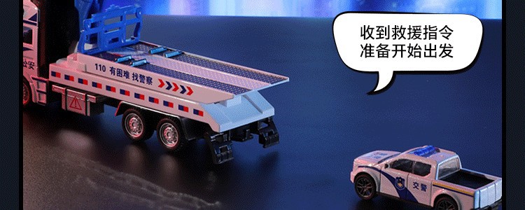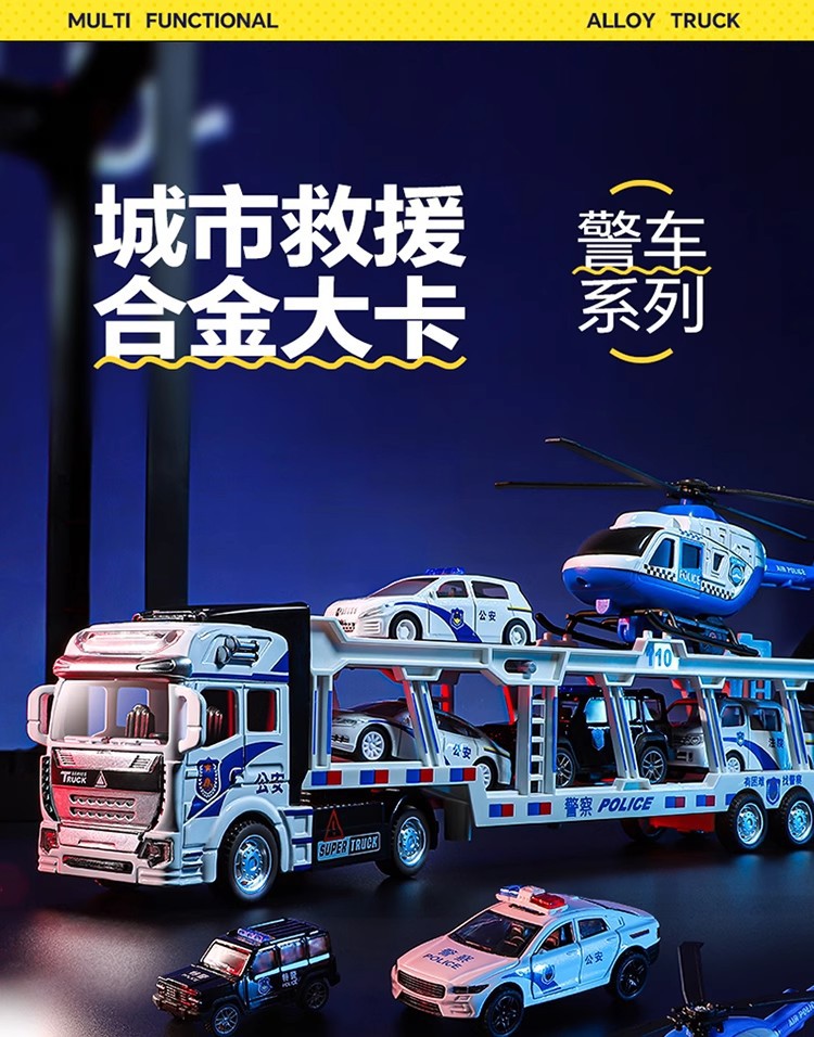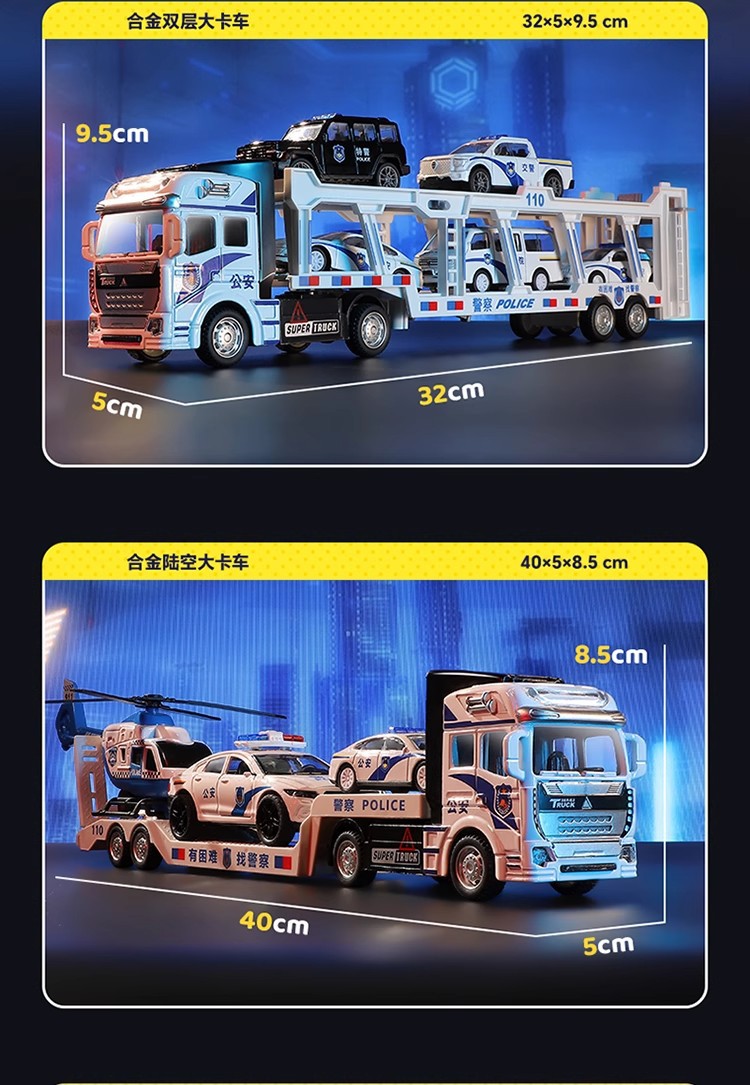 合金パトカー大型トラックトラック二重運搬車トレーラー子供玩具少年救助台車自動車モデル