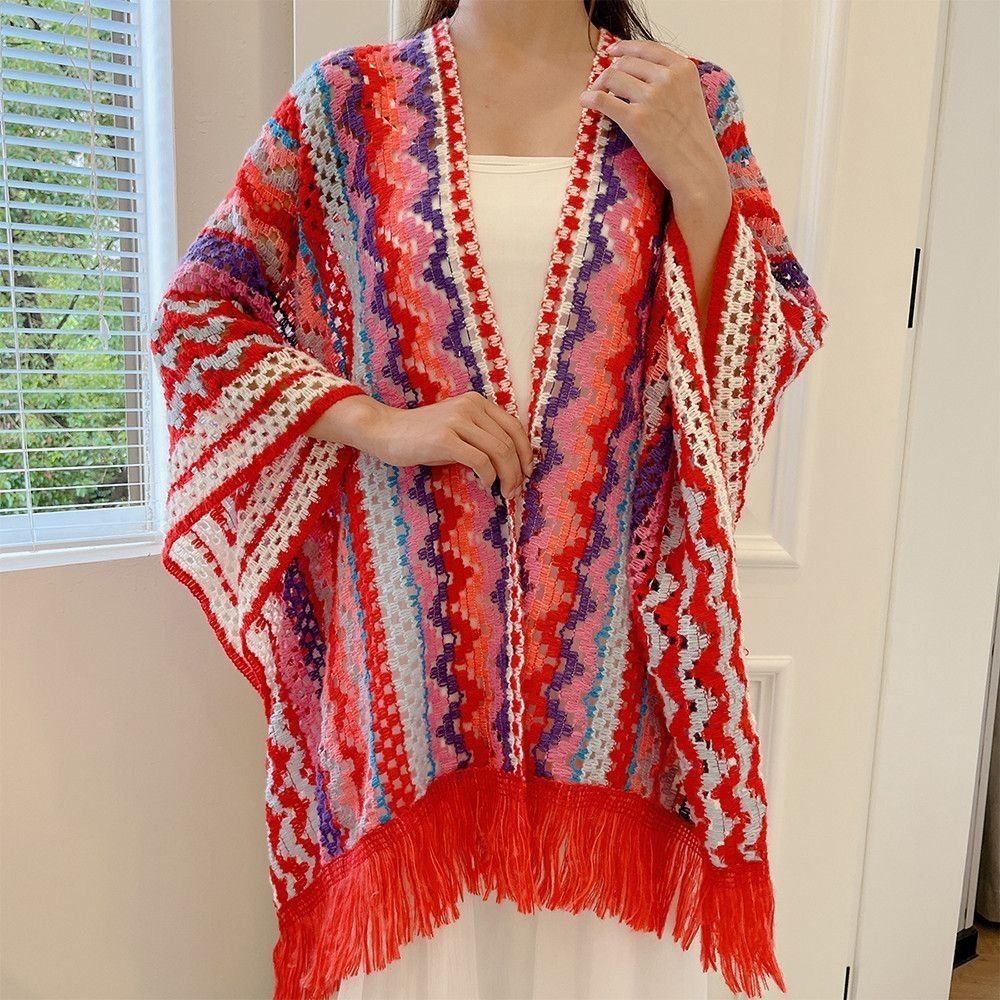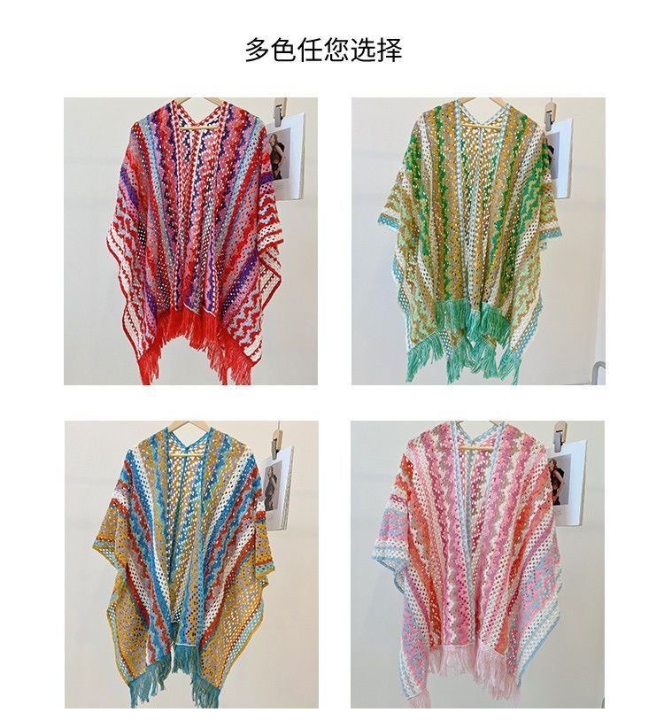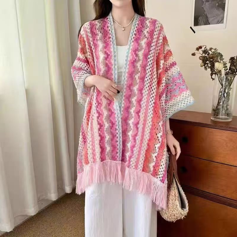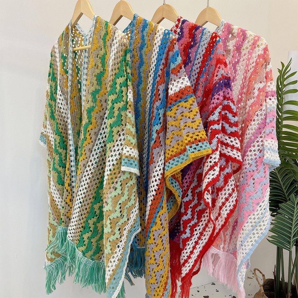 女性用の新しいスタイルのショール、カラフルなストライプのニットセーター、旅行や写真撮影用、多用途のエスニックスタイルのマント、旅行用の多用途のマント