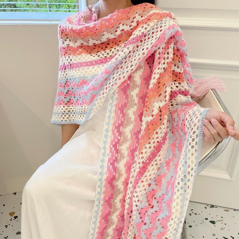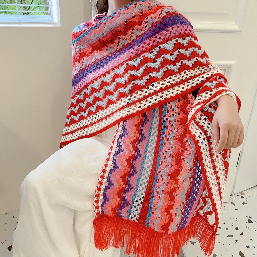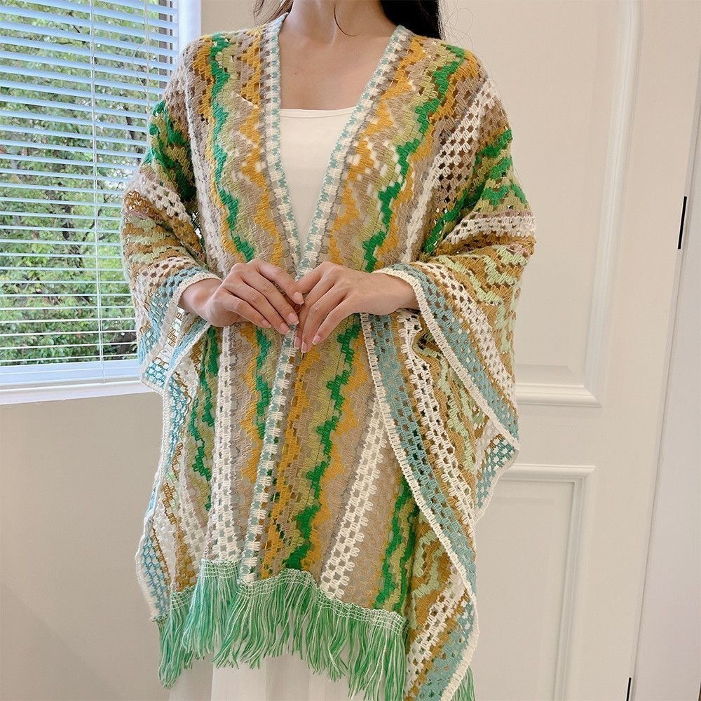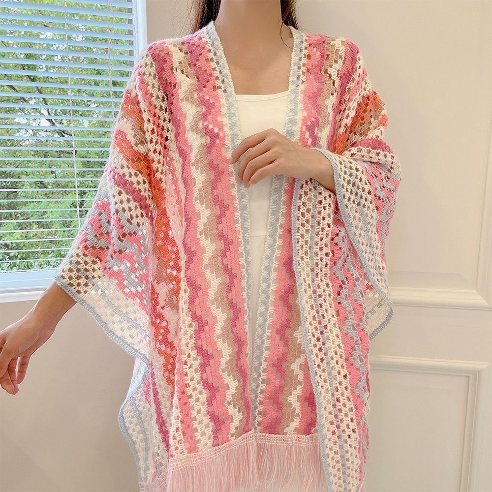 女性用の新しいスタイルのショール、カラフルなストライプのニットセーター、旅行や写真撮影用、多用途のエスニックスタイルのマント、旅行用の多用途のマント