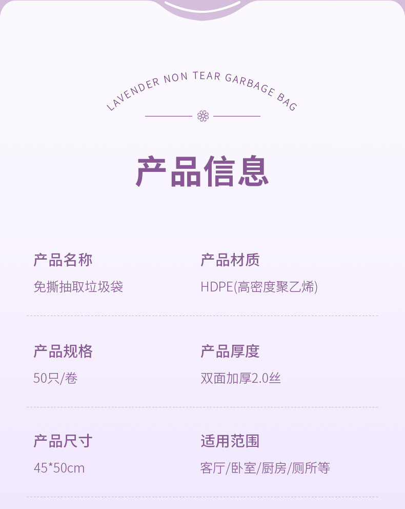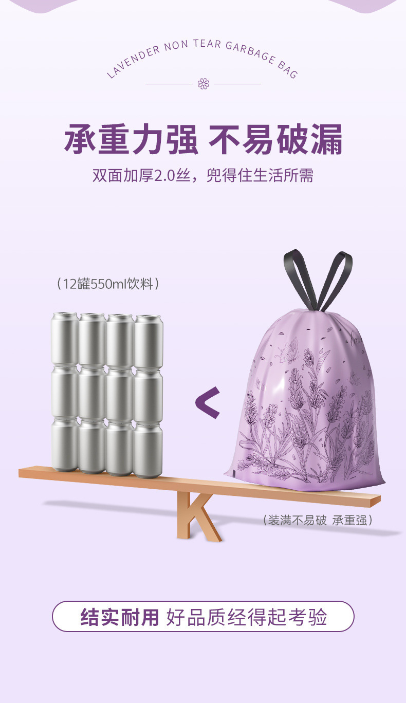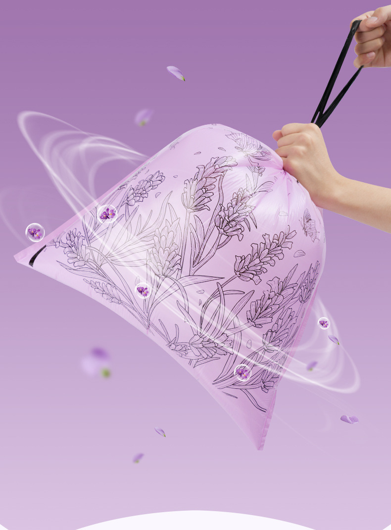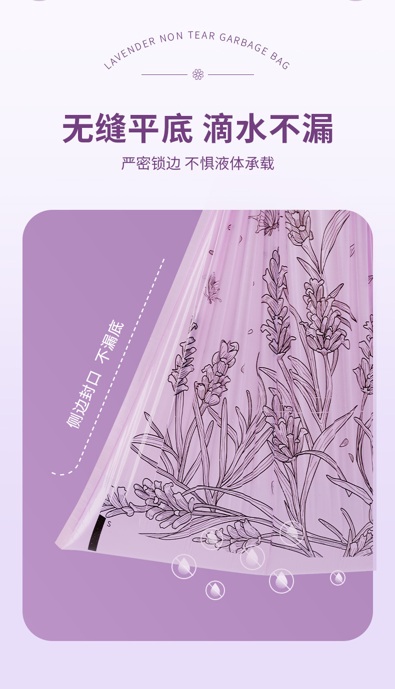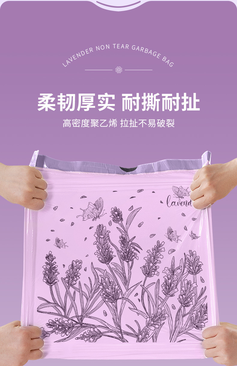 引き裂かないラベンダーの香りのゴミ袋は家庭で厚くて壊れにくい手提げ式の大きいサイズのビニール袋の厚いタイプです。