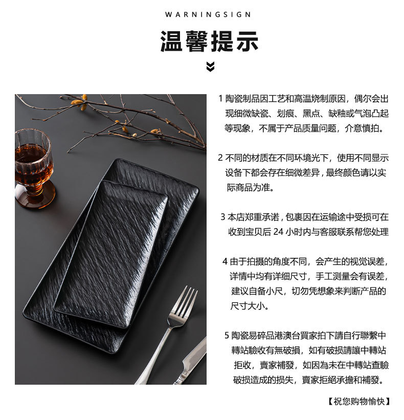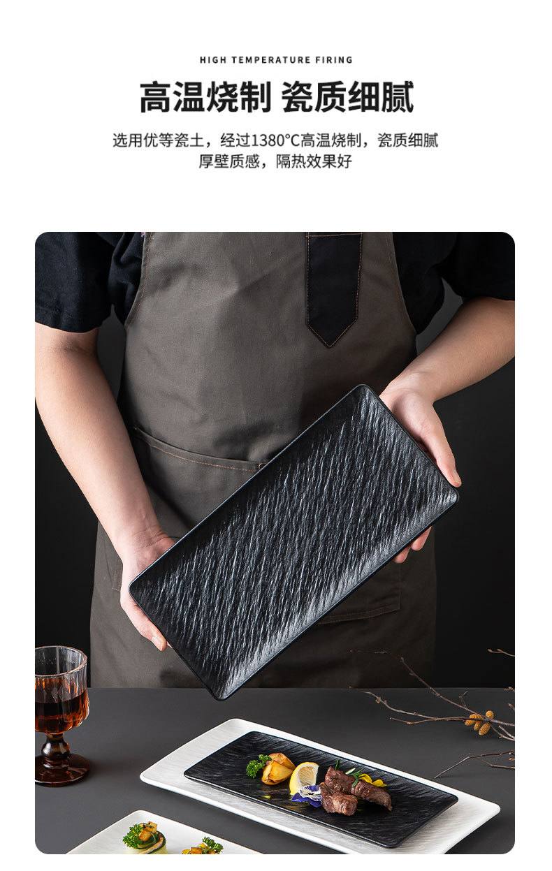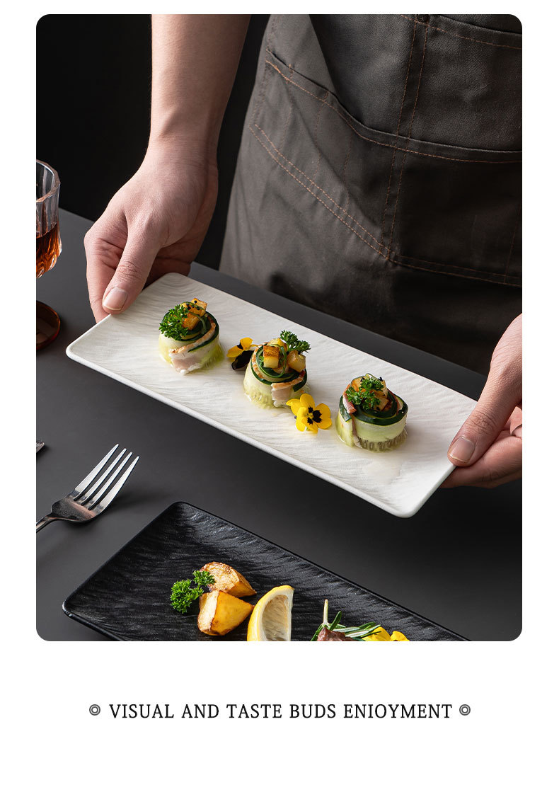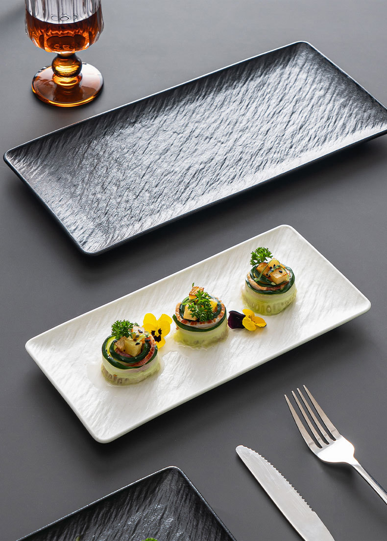 釉下色岩パターン長方形フラットプレートセラミックロングプレート寿司プレート刺身フラットプレートスナックプレートホーム