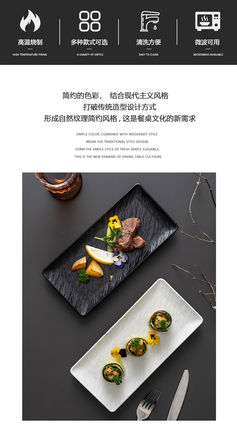 ステーキ洋食皿浅平皿ケーキデザート皿長方形刺身寿司皿菓子皿ホテル食器