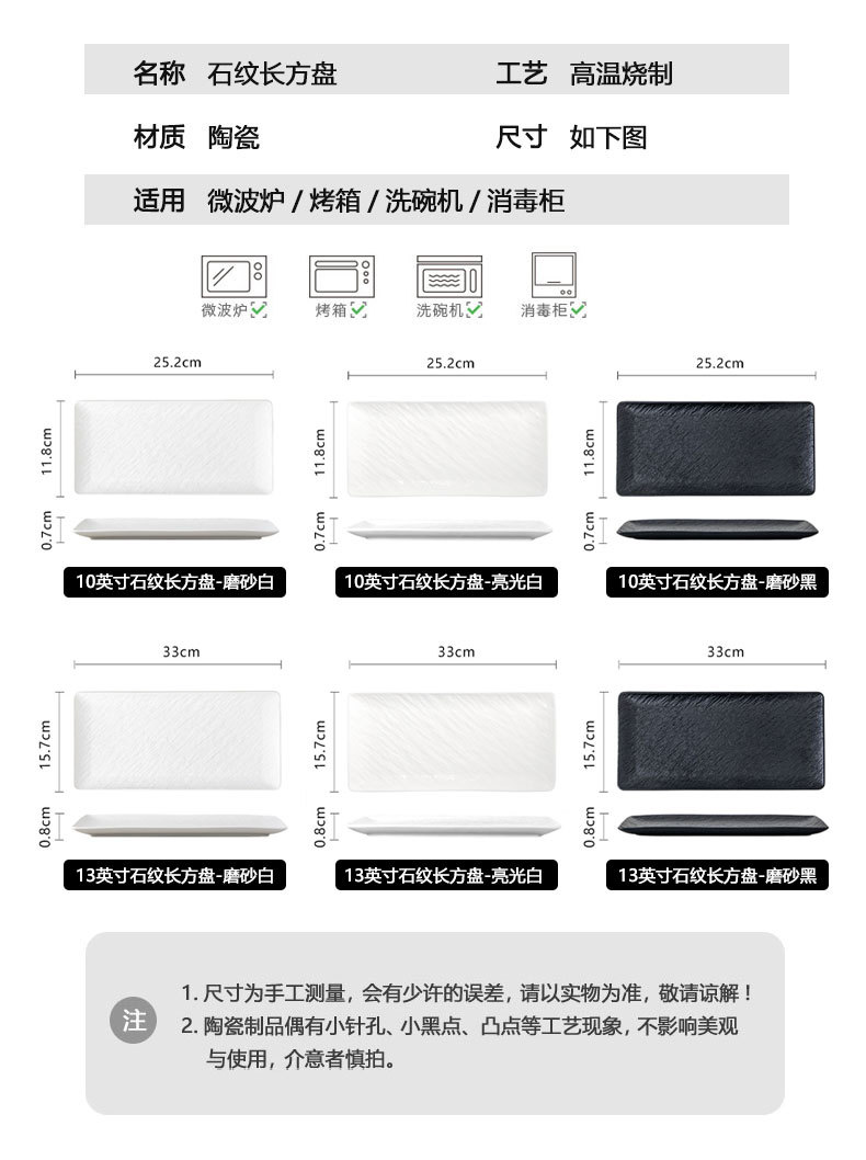10inch 石模様長方形プレート - 光沢のある白,10inch 石模様長方形プレート - つや消しホワイト,10inch 石模様長方形プレート - マットブラック,13inch 石模様長方形プレート - 光沢のある白,13inch 石模様長方形プレート - つや消しホワイト,13inch 石模様長方形プレート - マットブラック