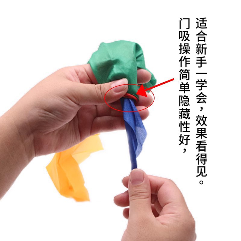四色のシルクタオルの変色は簡単で、マジックの道具を学びやすいです。