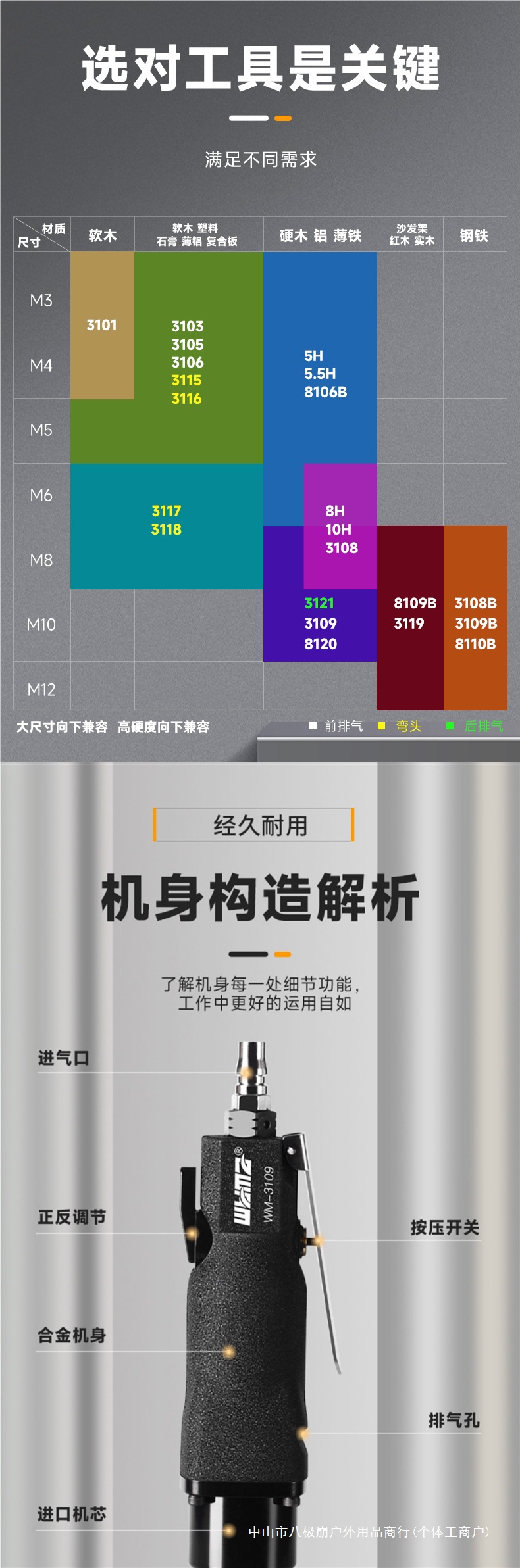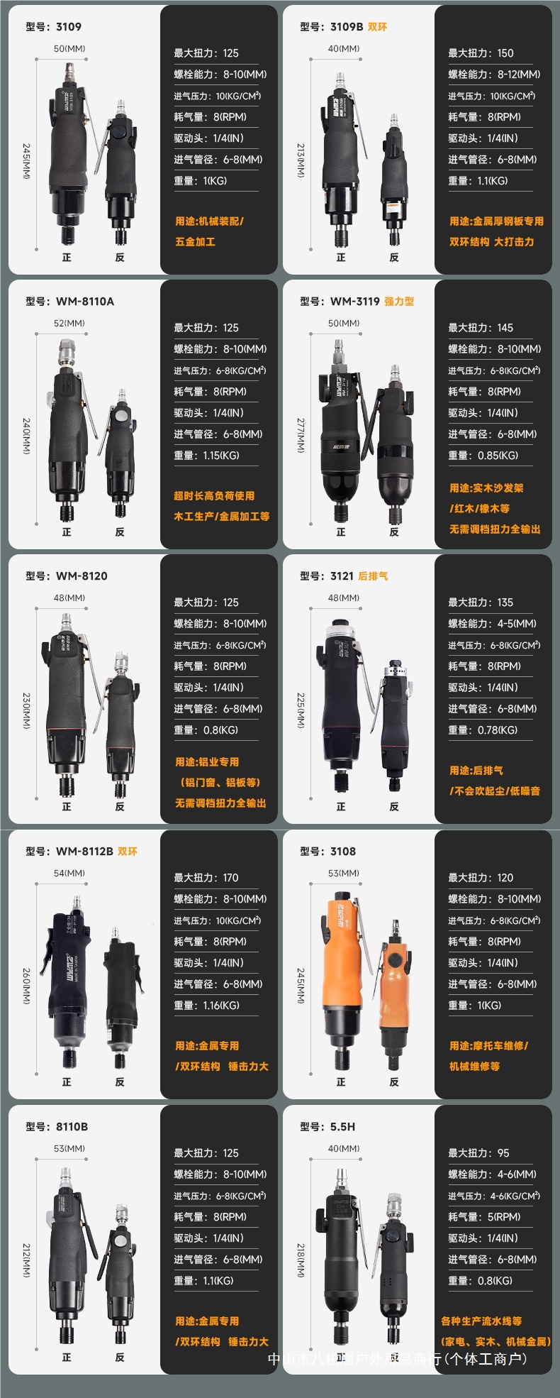 WM-3101 【プロモーションモデル】無料アクセサリー+セット,5H【スタンダードモデル】 WM-3103 無料アクセサリー+セット,5H【パワータイプ】 WM-3105 無料アクセサリー+セット,6H【パワフルタイプ】 WM-3106【軽量かつパワフル】付属品+セット付き,5H【耐久モデル】 WM-5H【木工業・金属業界共通】付属品+セット付き,5.5H【強化モデル】 WM-5.5H【長時間作業に最適】 付属品+セット付き,8H【強化版・延長シリンダー】 WM-8120【硬材/鋼板/アルミ板】高トルク【無料付属品+セット】,8H【通常モデル】 WM-8H【木工業用】付属品+セット付き,8H [リアエキゾースト] WM-3121 [工業用グレード] 無料アクセサリー + セット,10H[通常モデル] WM-10H[木工業界向け] 付属品+セット付き,10H-WM-3108 【スタンダードモデル】【無垢材専用】無料アクセサリー+セット,10H【工業用・高トルク】 WM-3109【木工業・金属業界共通】無料付属品+セット,10H [工業用グレード] WM-8110A [木工業界および金属業界向け汎用] 無料アクセサリー + セット,12H【工業用グレード】WM-3119【無垢材/ソファフレーム/マホガニー/オーク】無料アクセサリー+セット,12H【強化版】WM-8110B【メタル専用】無料アクセサリー+セット,12H【工業用グレード】WM-3109B【厚板メタル/ダブルリング】無料アクセサリー+セット,6H【二重リング構造】8106B 硬質無垢材専用 110トルク【無料付属品+セット】,10H【二重リング構造】8109B【後排気硬質無垢材専用】155トルク【無料付属品+セット】,10H【二重リング構造】3108B【金属専用・強力・耐久性】無料アクセサリー+セット,【ガンタイプ6H】3106PD【ダブルハンマー】,【ガンタイプ8H】3109PD【8Hダブルハンマー】,5H【エルボ】 WM-3115【狭い場所での使用】,8H【エルボ】 WM-3118【狭い場所での使用】