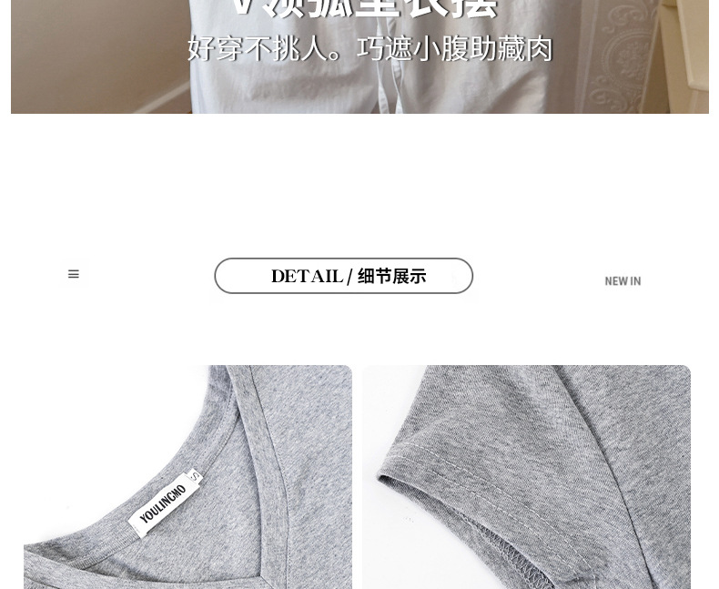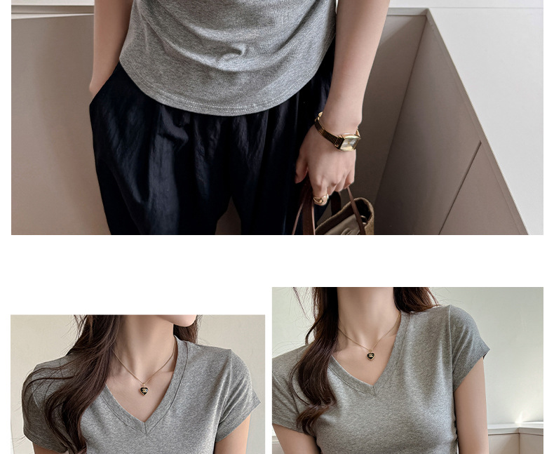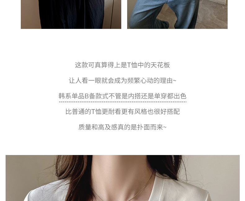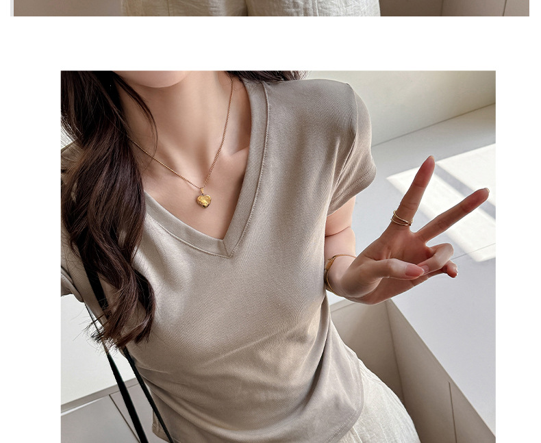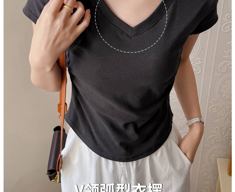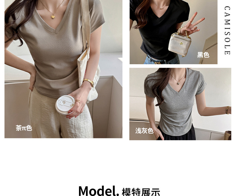 純欲風深U襟正肩半袖tシャツ女性式夏の修身はやせています。