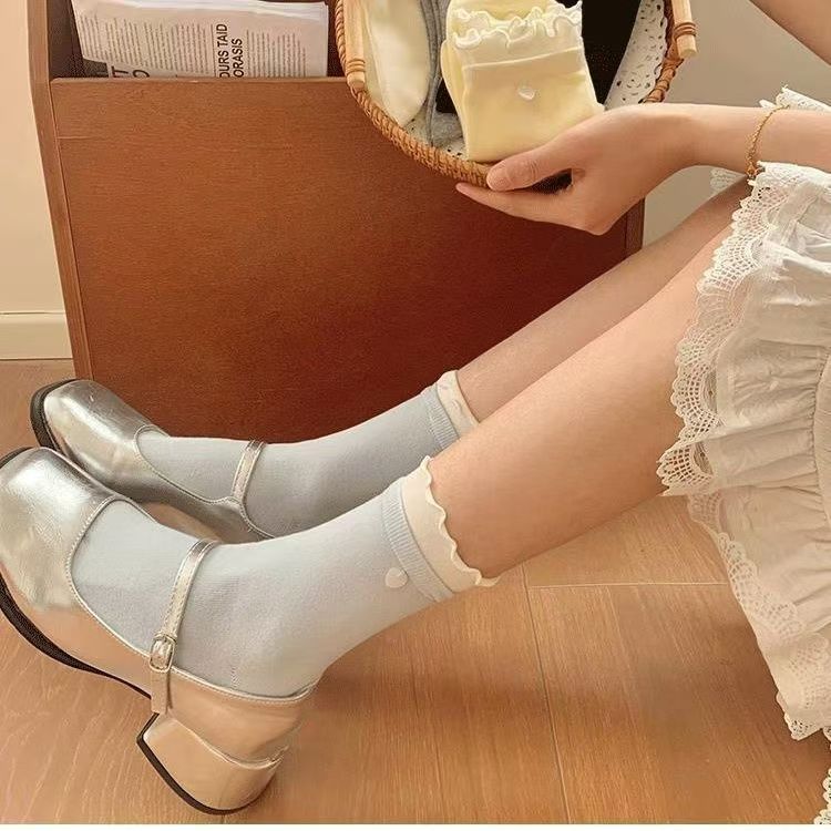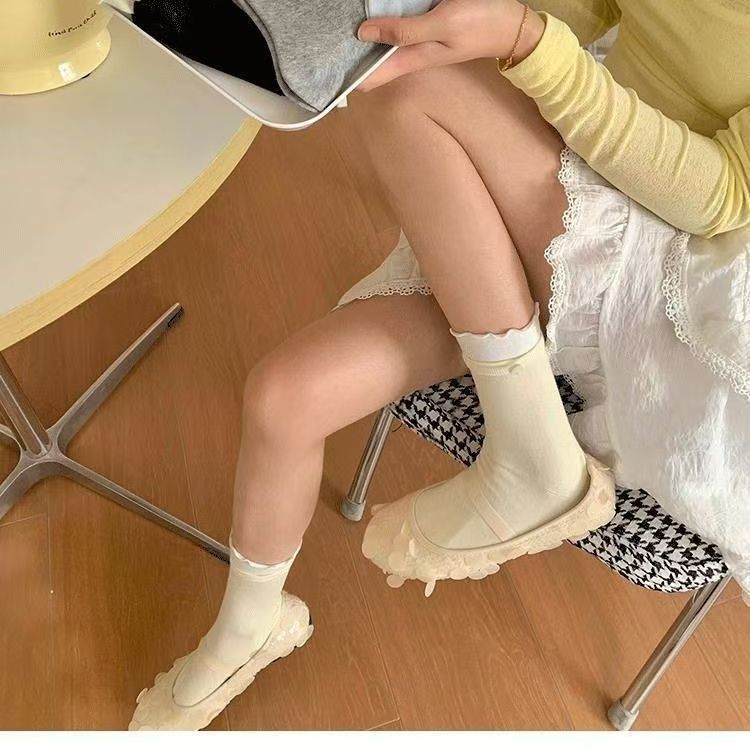店主オススメの純白JKソックス、レースソックス、レディースミドル丈ソックス、ins制服風、万能、韓国系ガーリースタイル、ins風