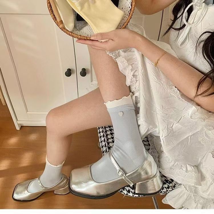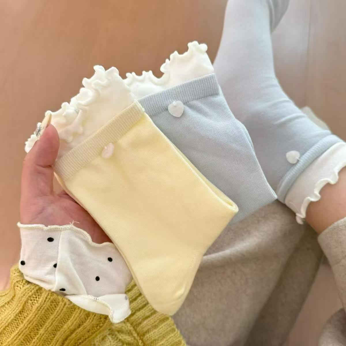 カラー愛心靴下子供ins風韓国版中筒白黒カラードーパミンカラー靴下女性靴下