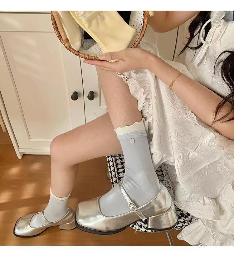 フレンチレースのアンドロメダ靴下の女性の中筒靴下の夏の超薄の組み合わせの小さい靴の真珠のロリータのソックスの15cm