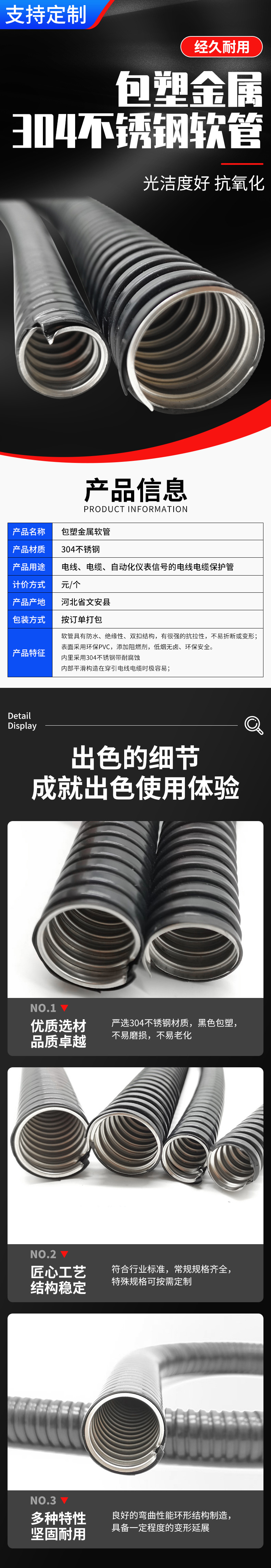 304ステンレス鋼プラスチック被覆金属軟管黒色配線蛇皮管201電線保護管波形管