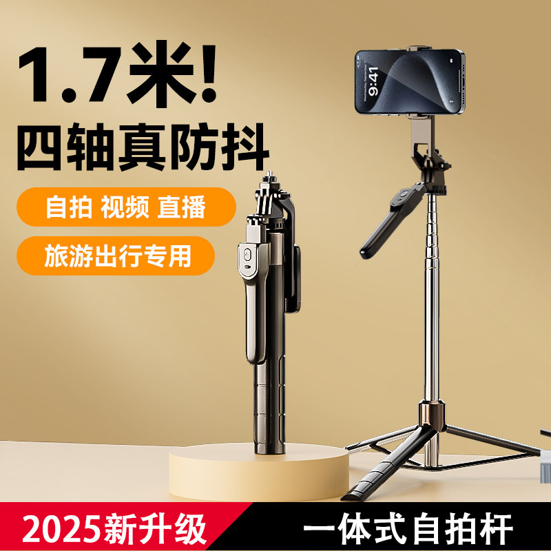 新型自撮り棒 1.7m 多機能 TikTok 写真撮影 デスクトップ伸縮式ライブブロードキャストスタンド 三脚 汎用型 縦撮り対応